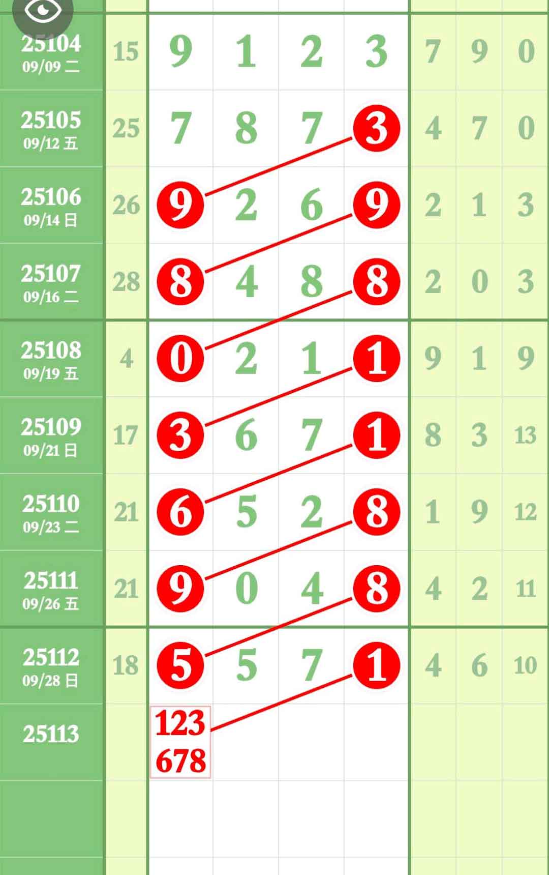 - 头尾主攻范围162738XX051649,重点678XX0156,单吊7十位跟踪三定。