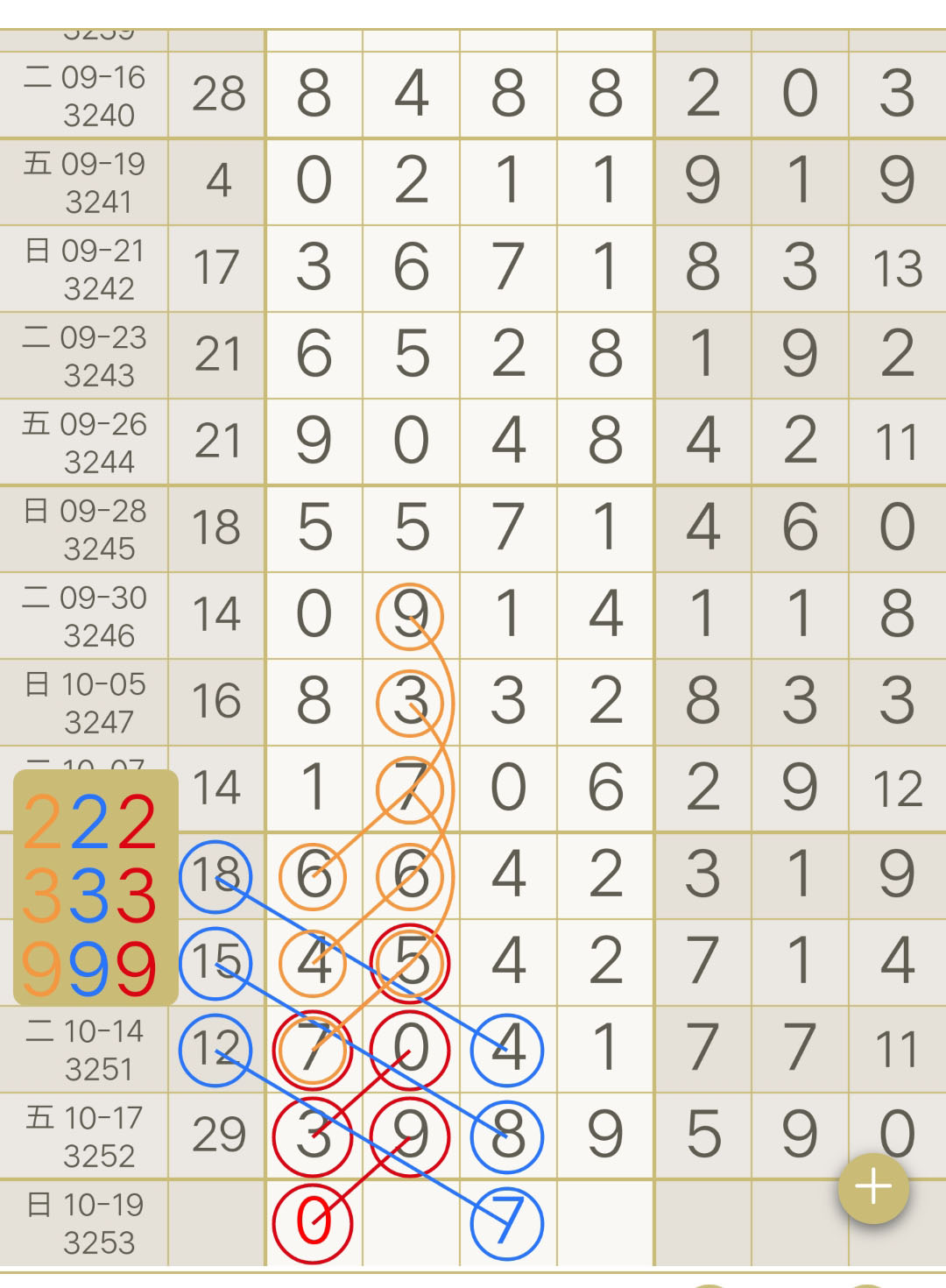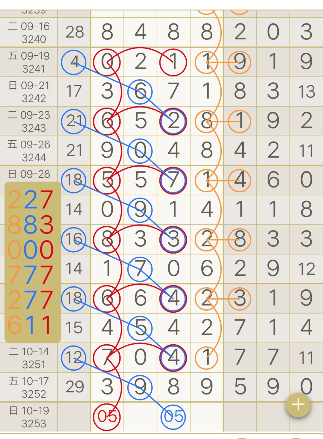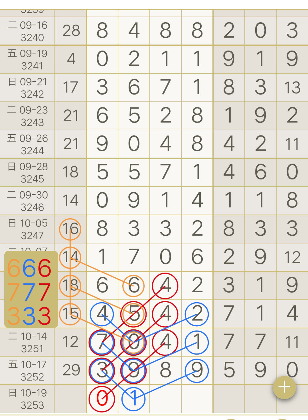 - 【七星彩-3253期】“一杯老酒666”芝麻2连中,上期圈中芝麻3989!“幸运”本月累计圈中3次芝麻!“码富贵”二定3连中!“牛爷”三定4连中!跟上!