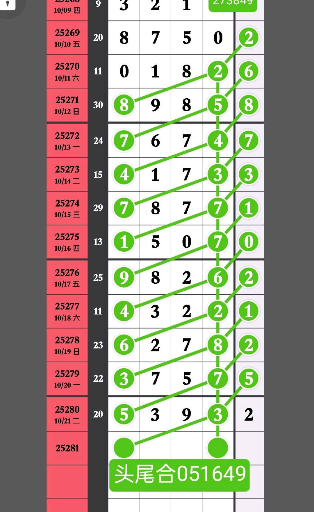 - 本期273849头,053849百,051638十,单数尾,抓规定码,跟进享欢乐。
