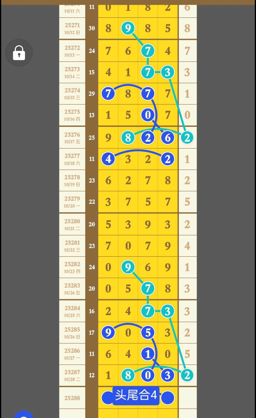 - 芝麻复式234789,本期主攻二定9X7X,三定搭配跑8,单枪芝麻7913。