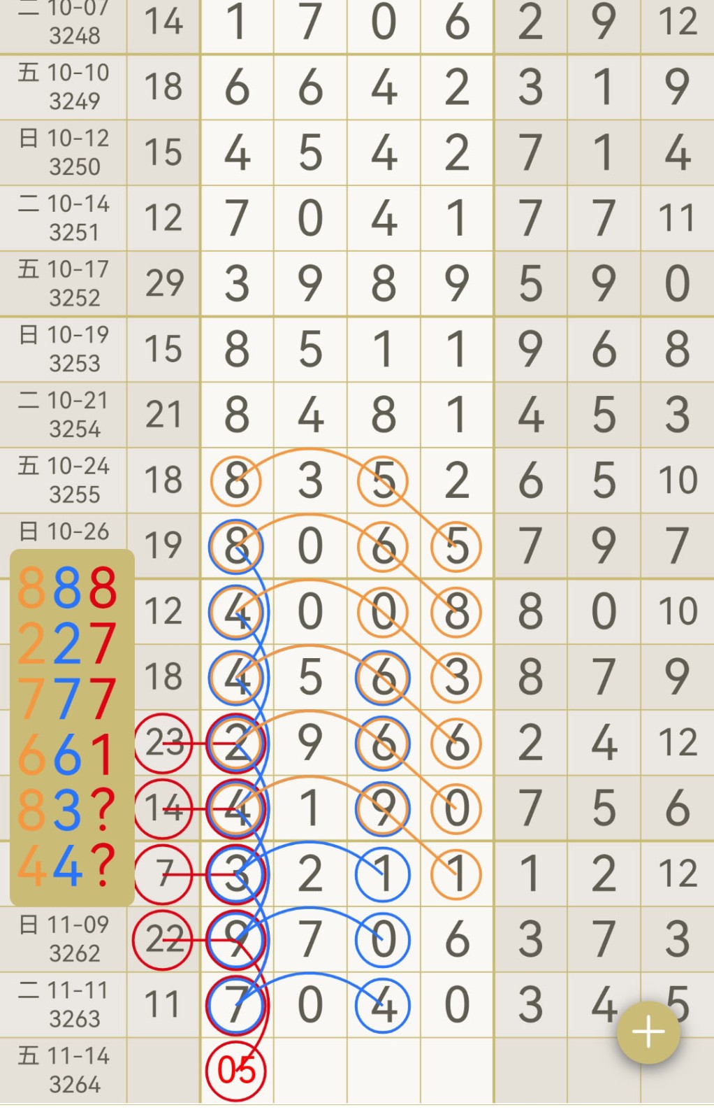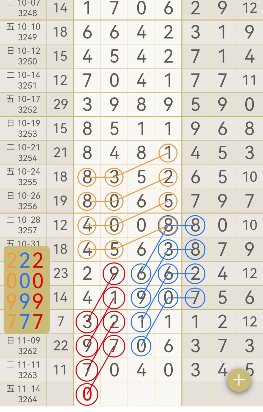 - 【七星彩-3264期】“幸运”上期圈中芝麻7040,本月累计圈中2次芝麻!金码璀璨夺目,靓码光彩出众!
