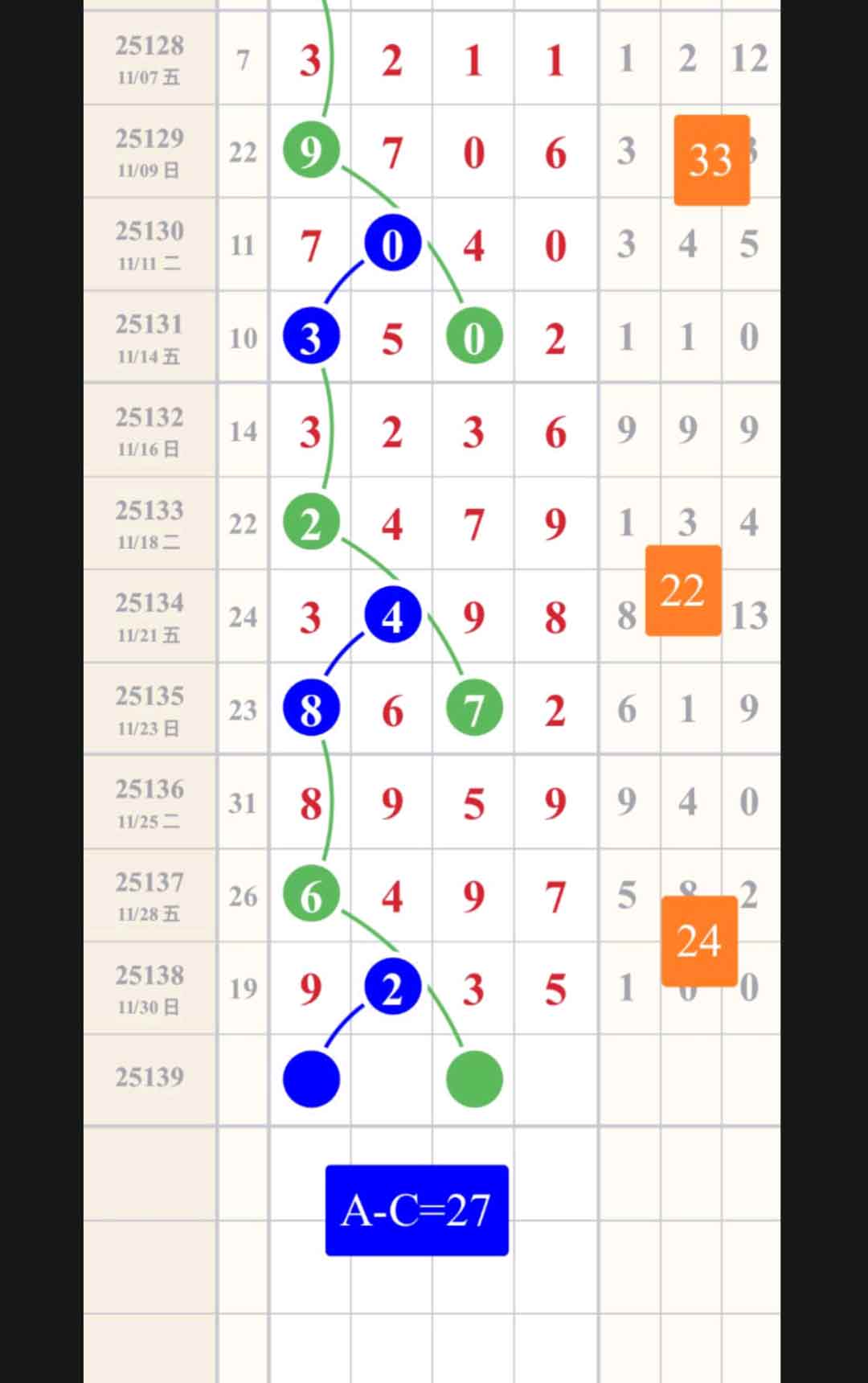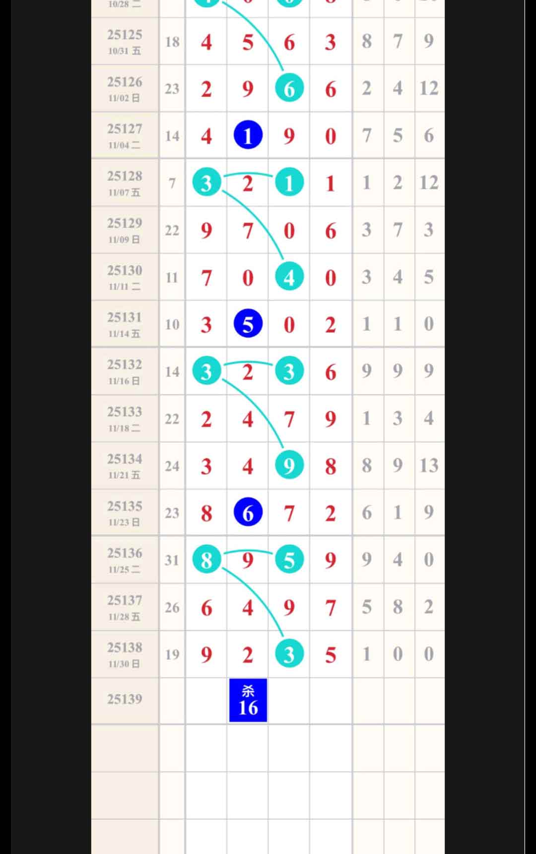 - 本期主攻中肚,走重对或百位+2=十位,也可考虑百位+5=十位+4。