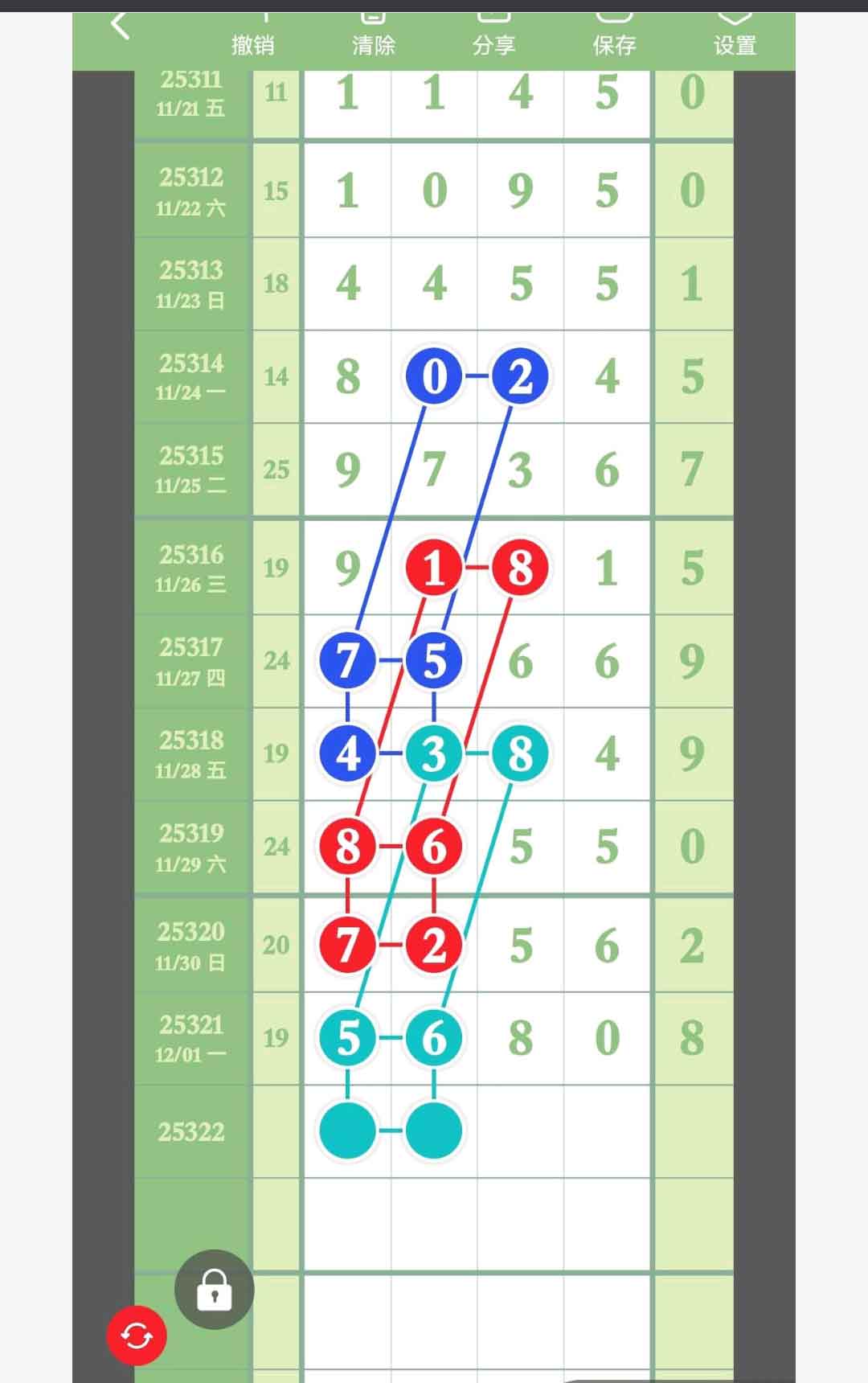 - 本期主攻中肚,走重对或百位+2=十位,也可考虑百位+5=十位+4。