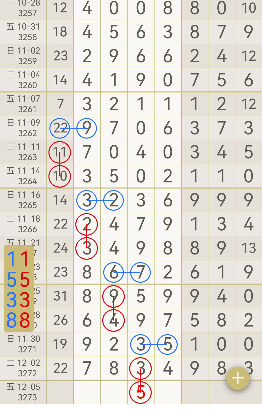- 本期主攻中肚,走重对或百位+2=十位,也可考虑百位+5=十位+4。