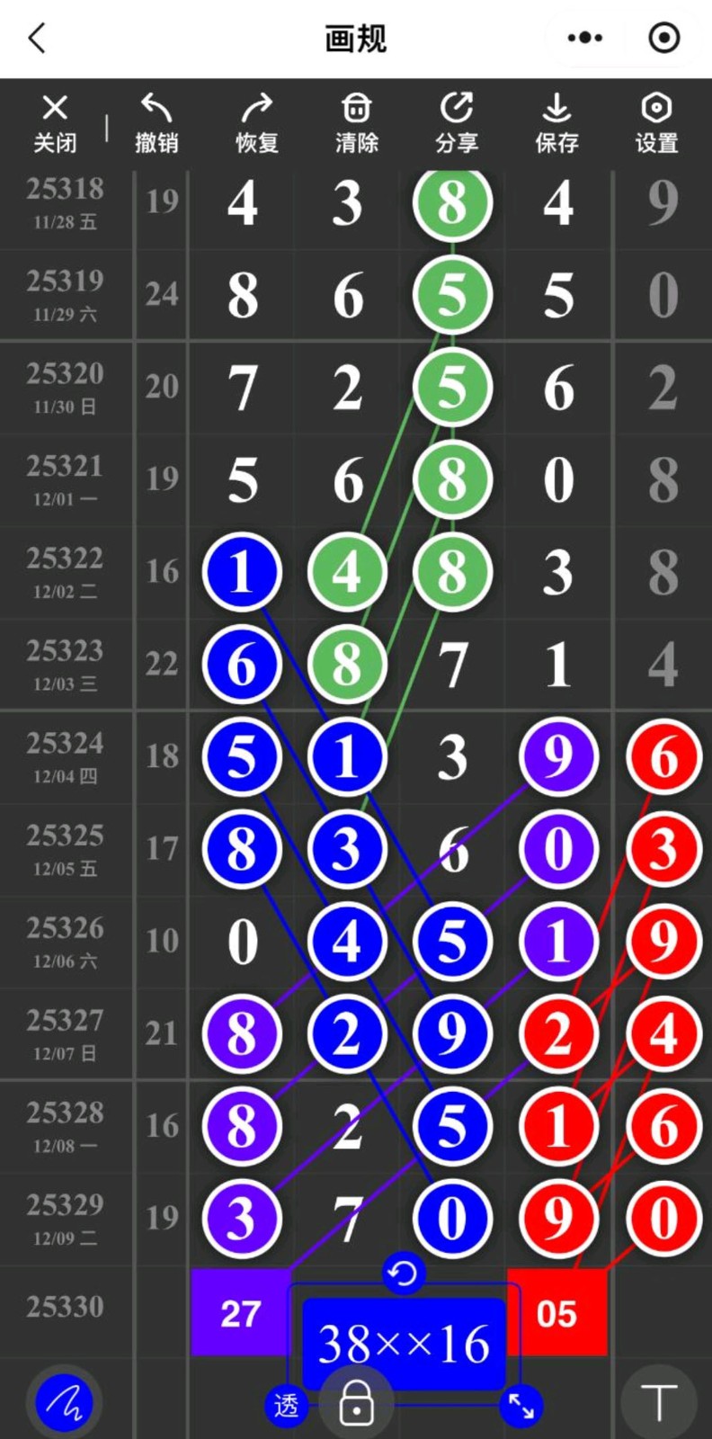 - 本期38铁,主攻头尾数,跟下二定38XX27、49XX38、05XX38。