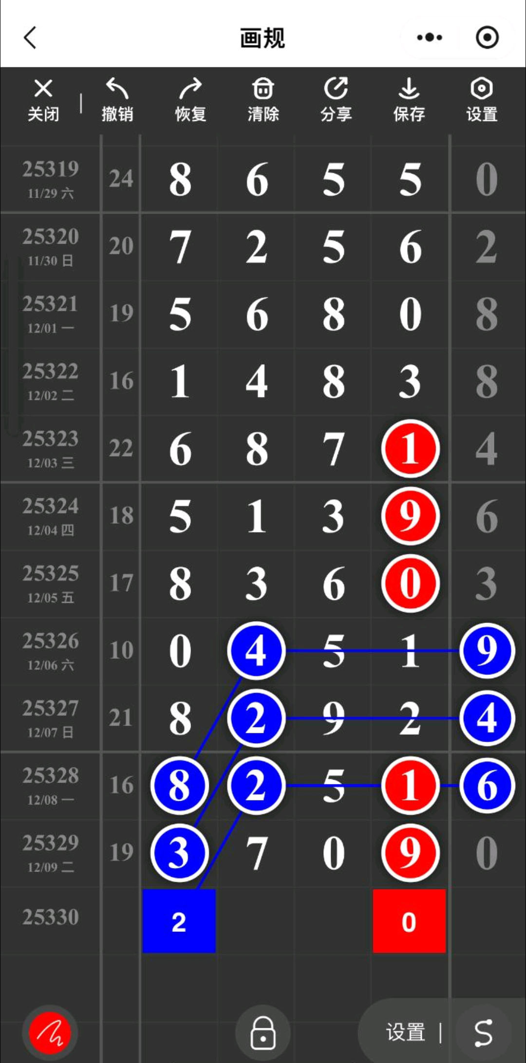 - 本期排除7值芝麻大奖,排除头尾合0,排除中肚合9。