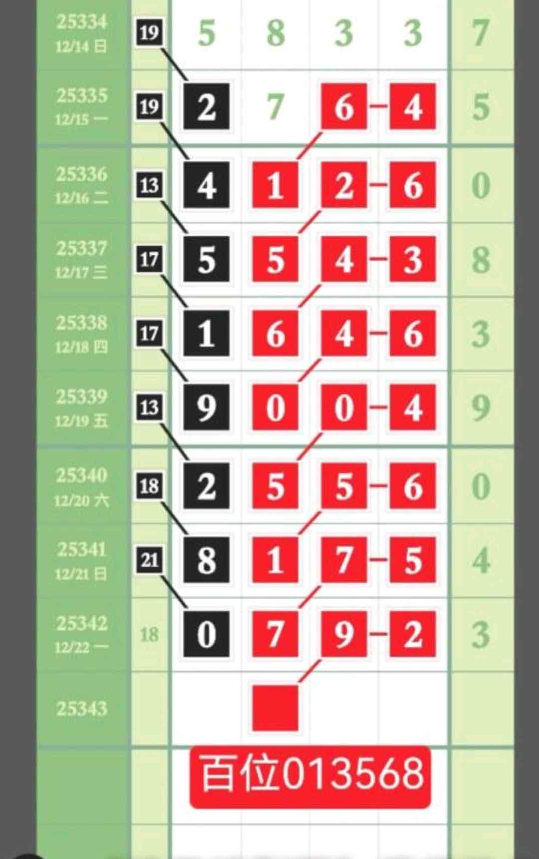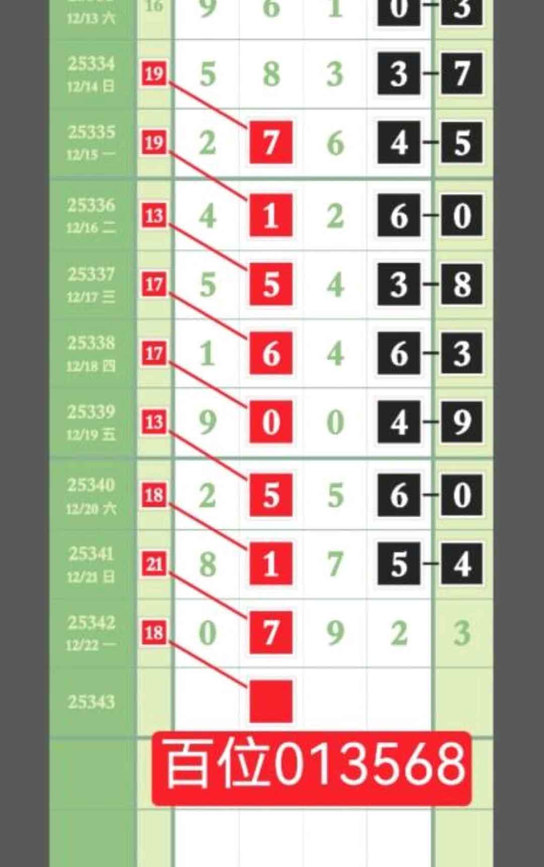 - 百位重点范围在013568中取数,抓规定码,精选数据,跟进享欢乐。