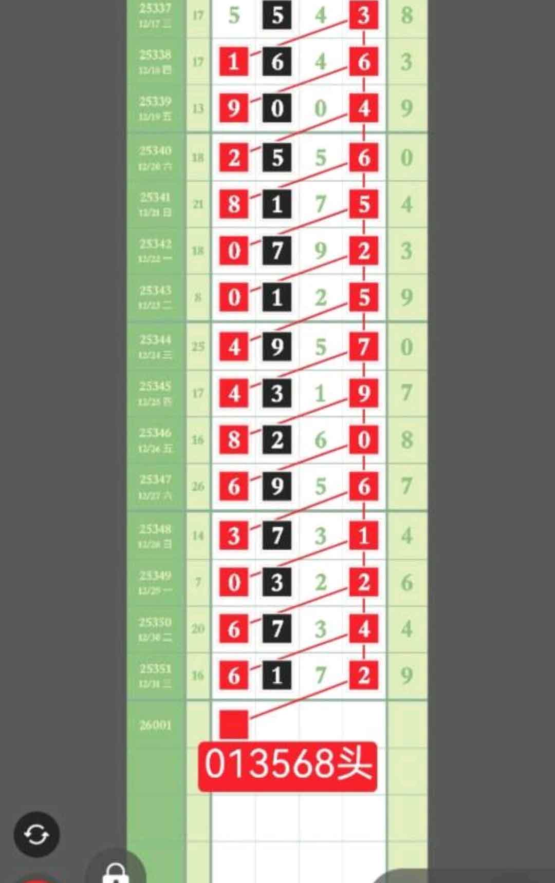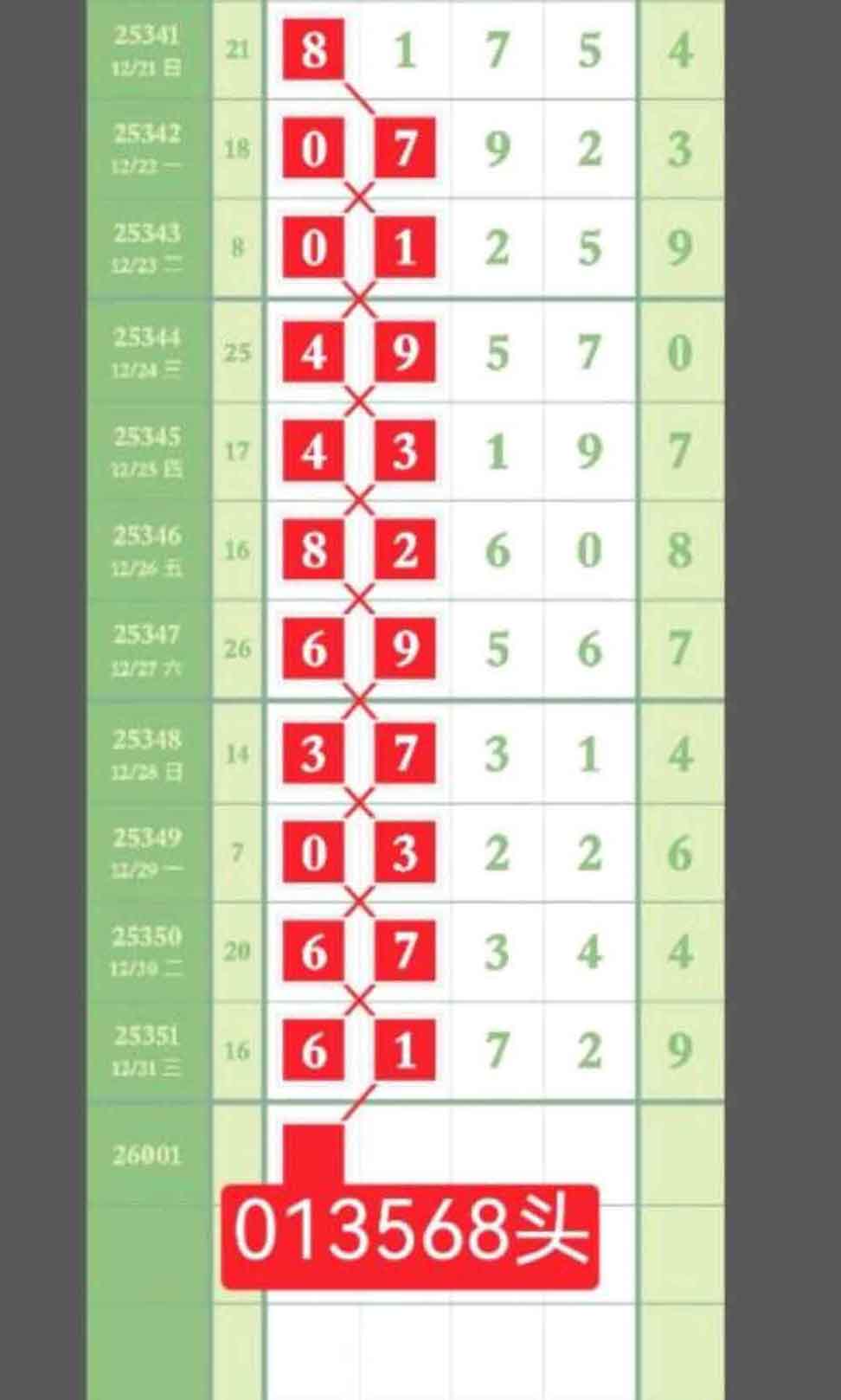 本人侧重主攻千位,013568范围中取数做头,看好别犹豫。