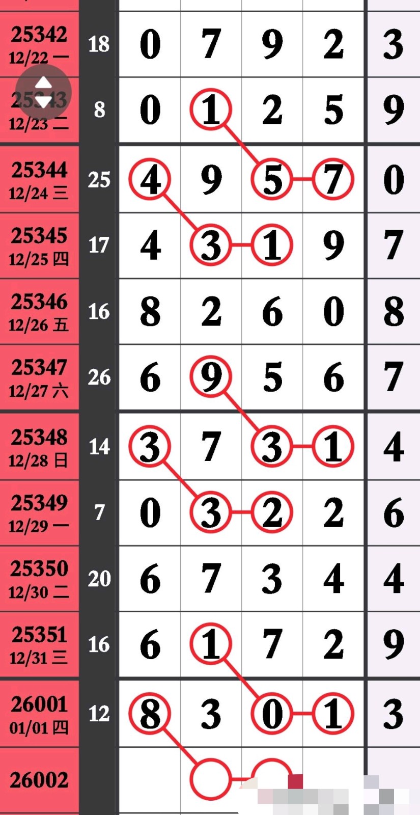 - 今日研究位置走势图,分析十位27,个位05,千位38。