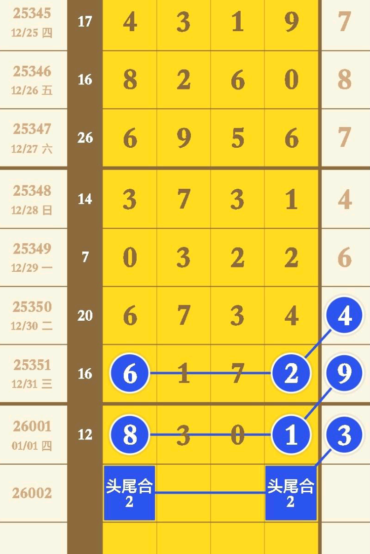 - 今期头尾范围012389XX012389,中肚范围X491638/491638X,看好单枪二定02XX、6X3X。