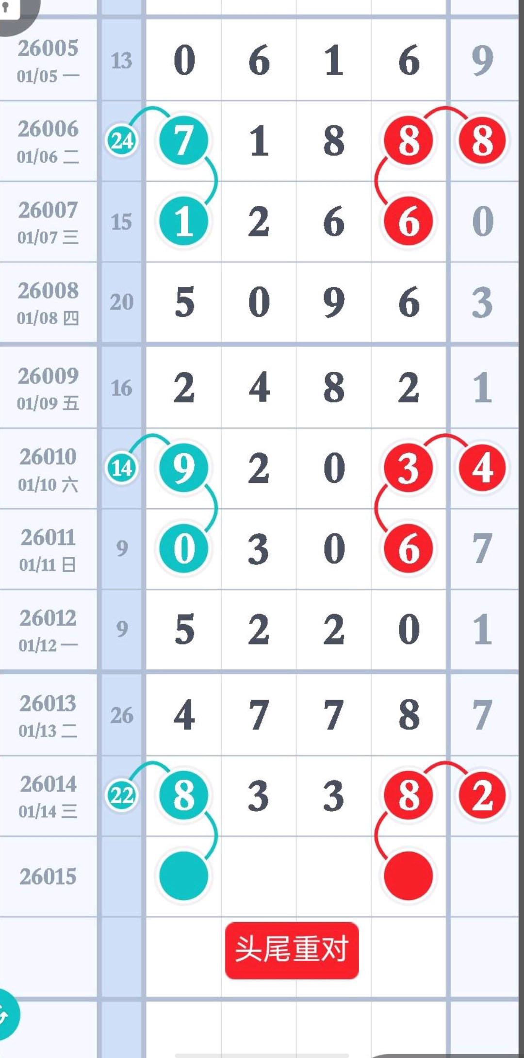 - 头尾双重或对数,十个位双重或对数,三定头+38=十个合分。