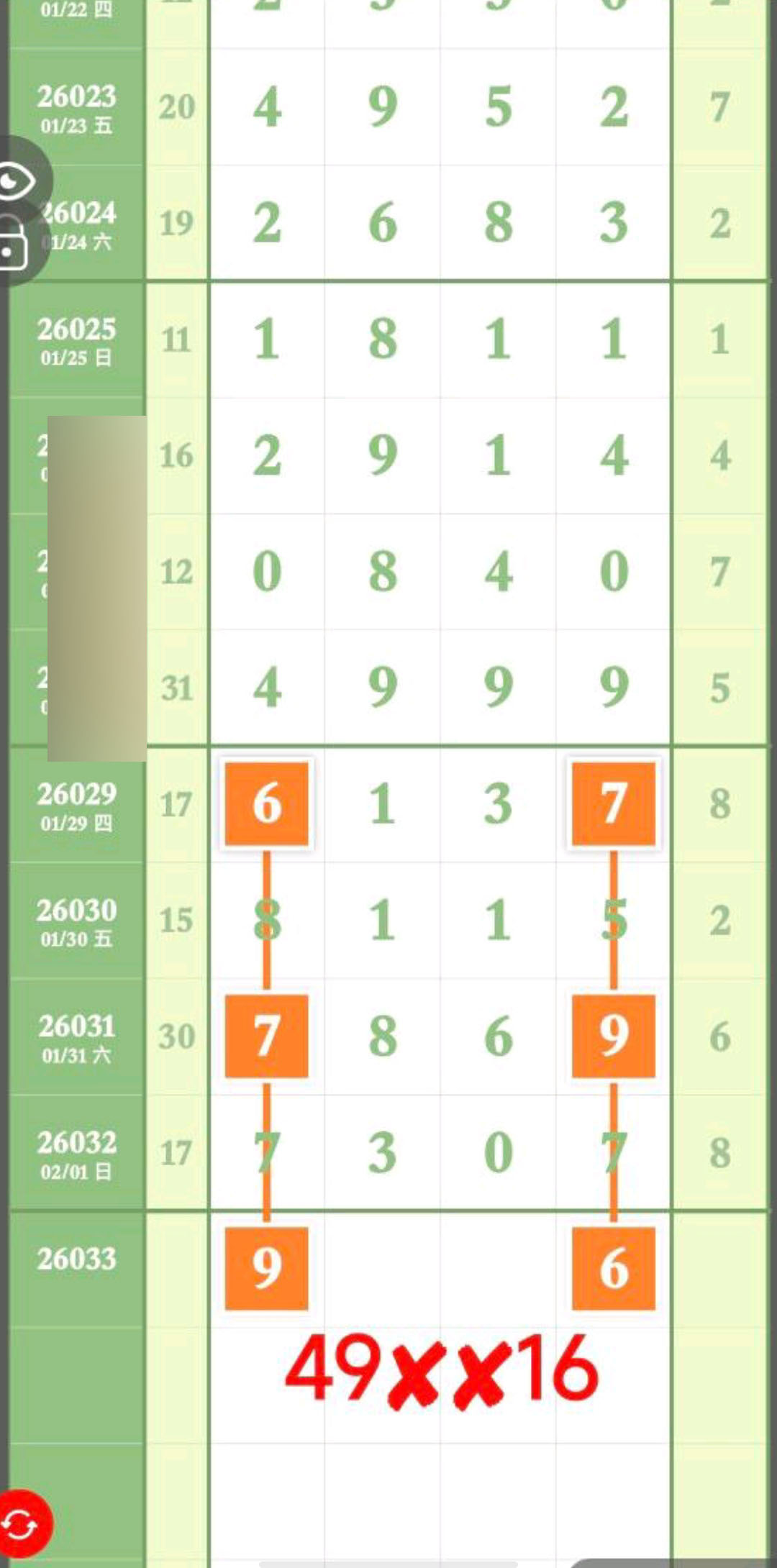 - 主攻16XX16、X16/49X、X49/16X,重点X46X、X14X、6XX6、1XX1。
