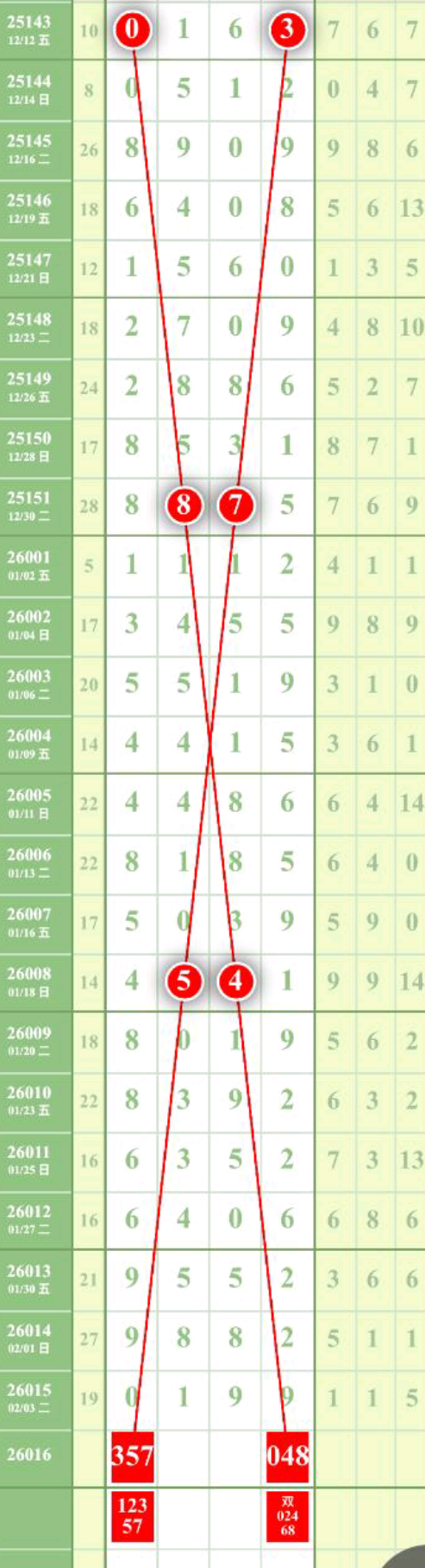 长规走势,千位12357,千位12458,十位01467,个位02468,速来围观,一睹为快。