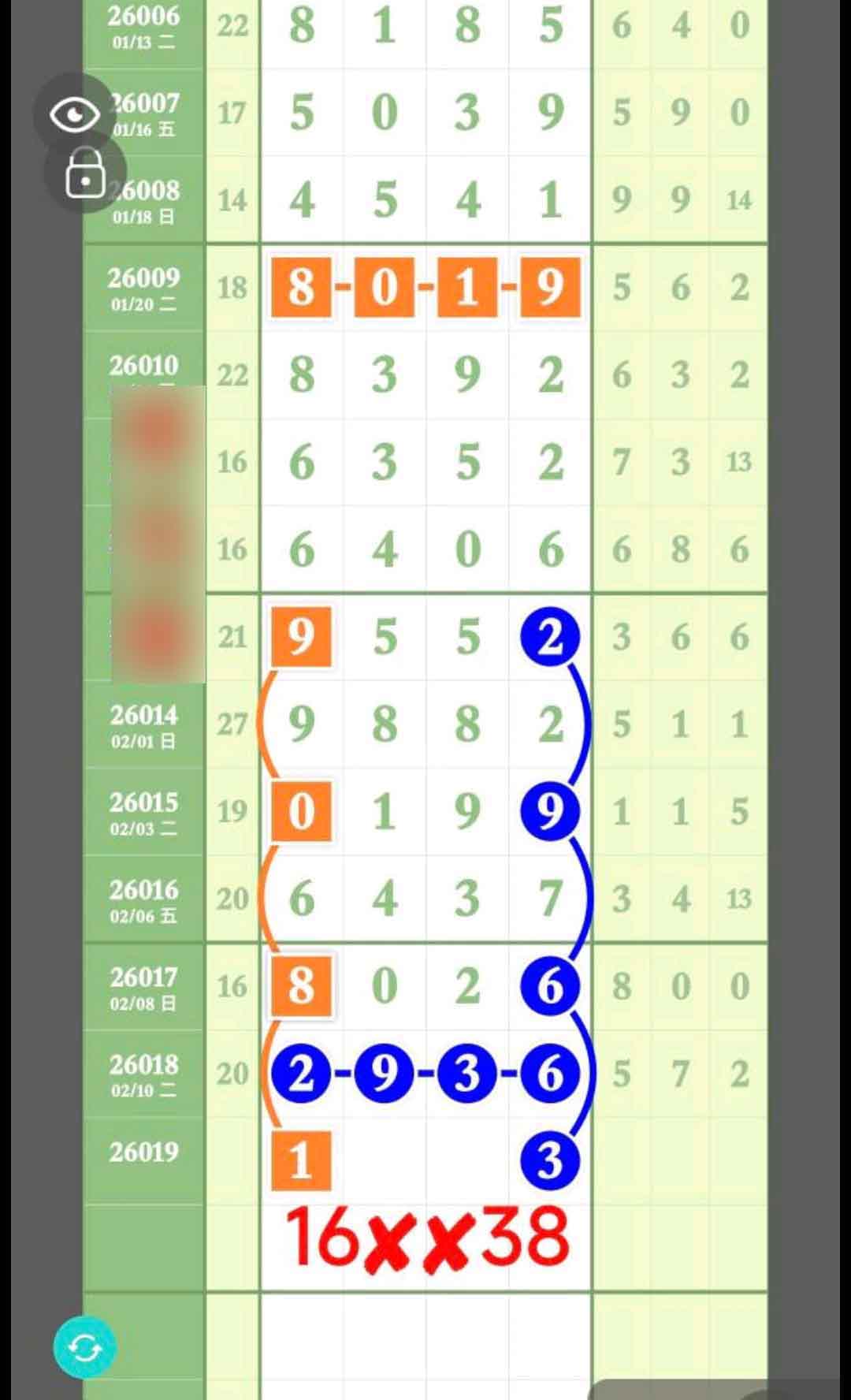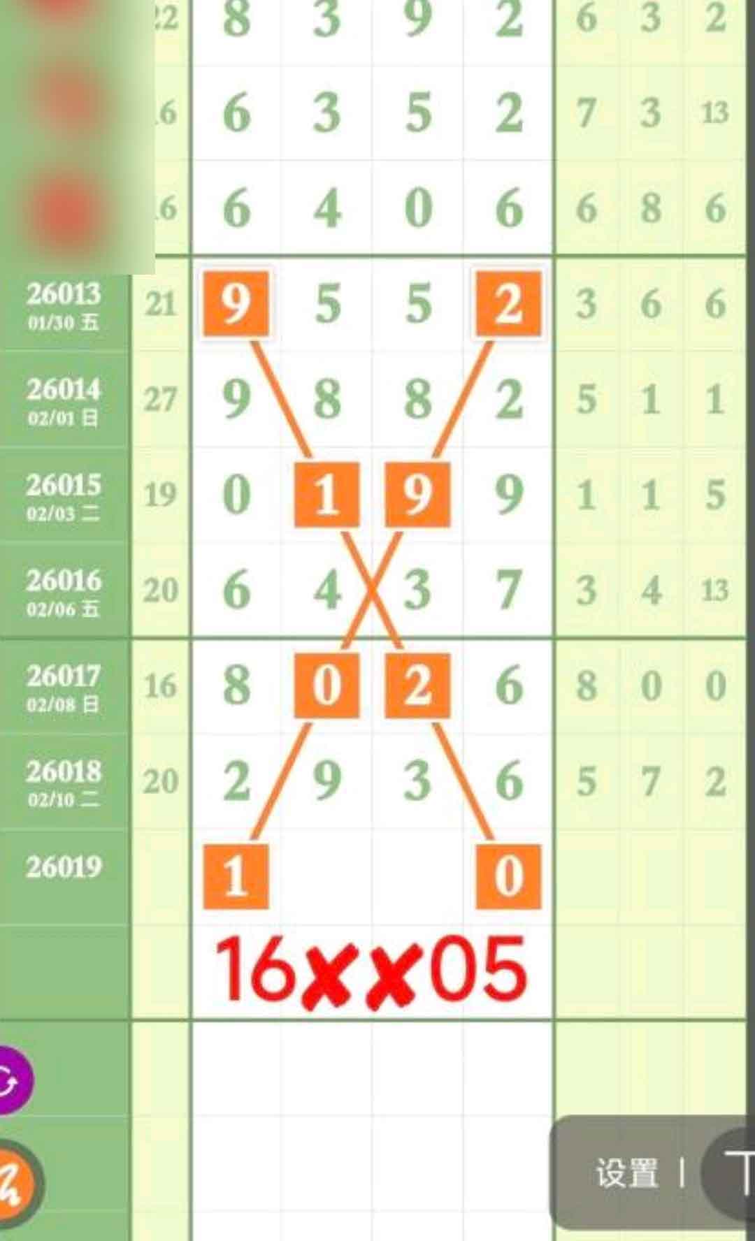 本期16、05、38各取一数上奖,它们组合成16XX05、16XX38、X38/38X、X16/05X。