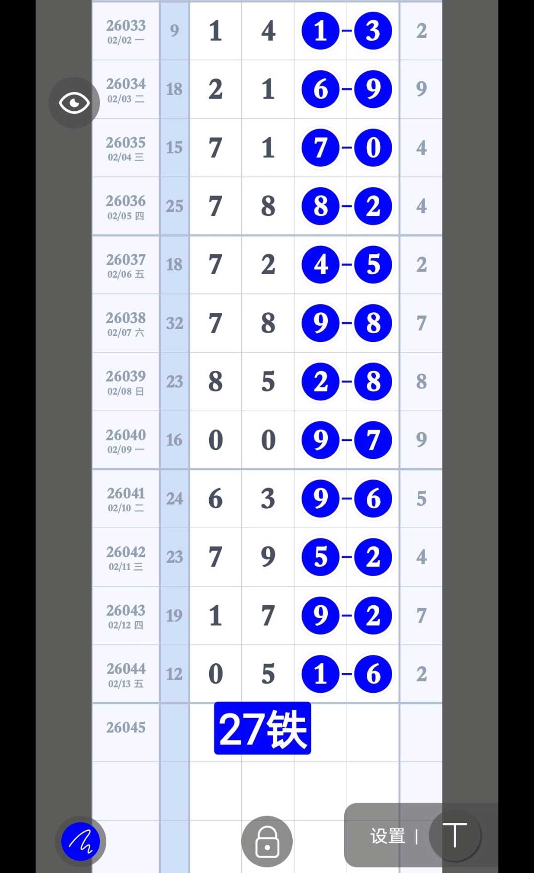 27铁码,定05尾,跟下二定05尾走27,精品数据,等你来看。