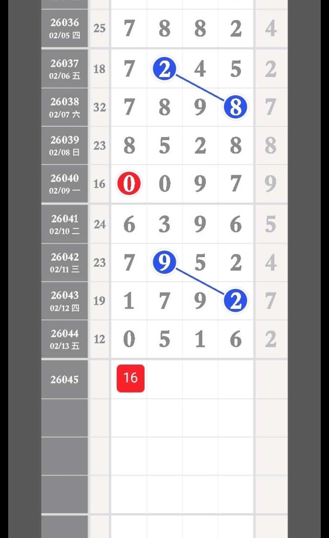- 跟下16头,头尾合05,主攻16XX49,百个位16差分,精彩数据,不容错过。