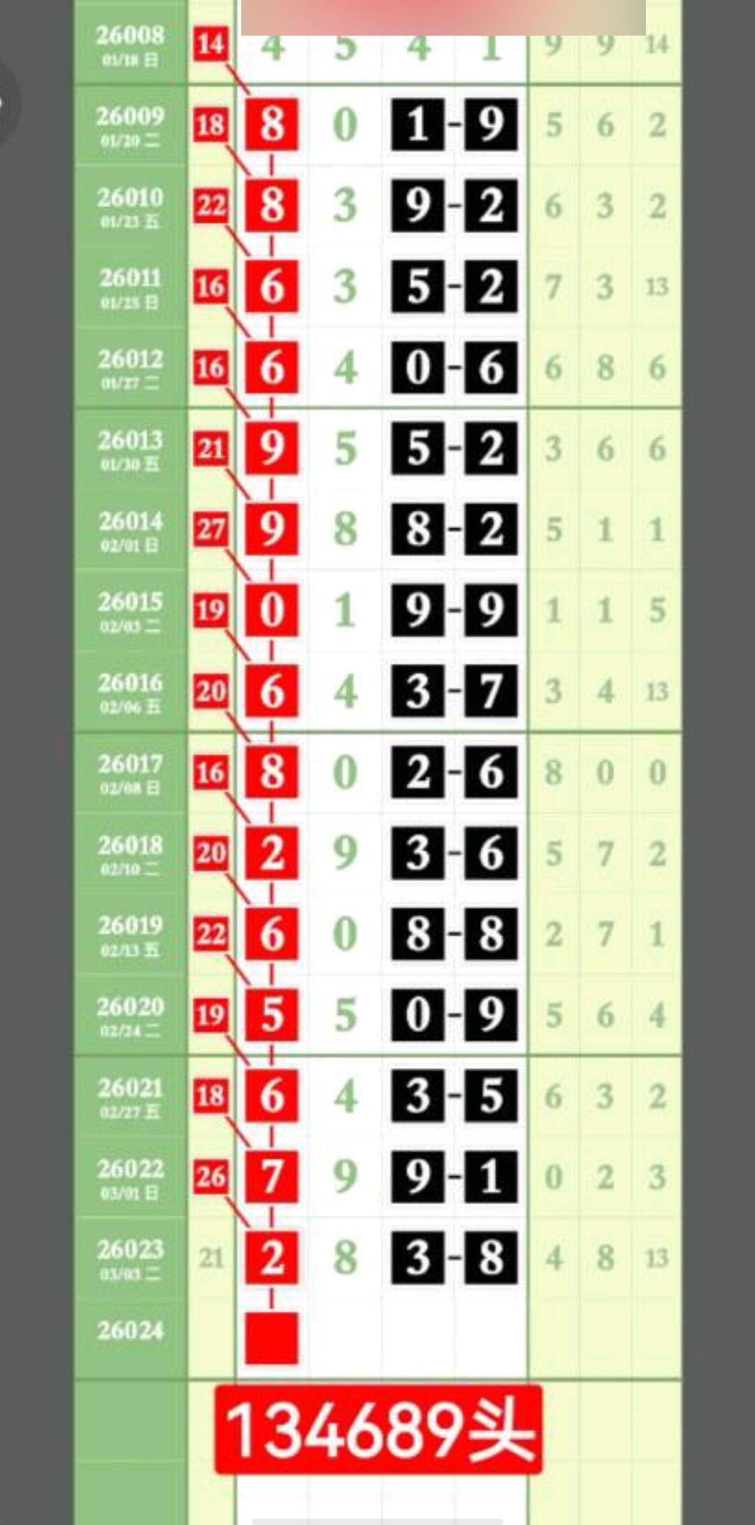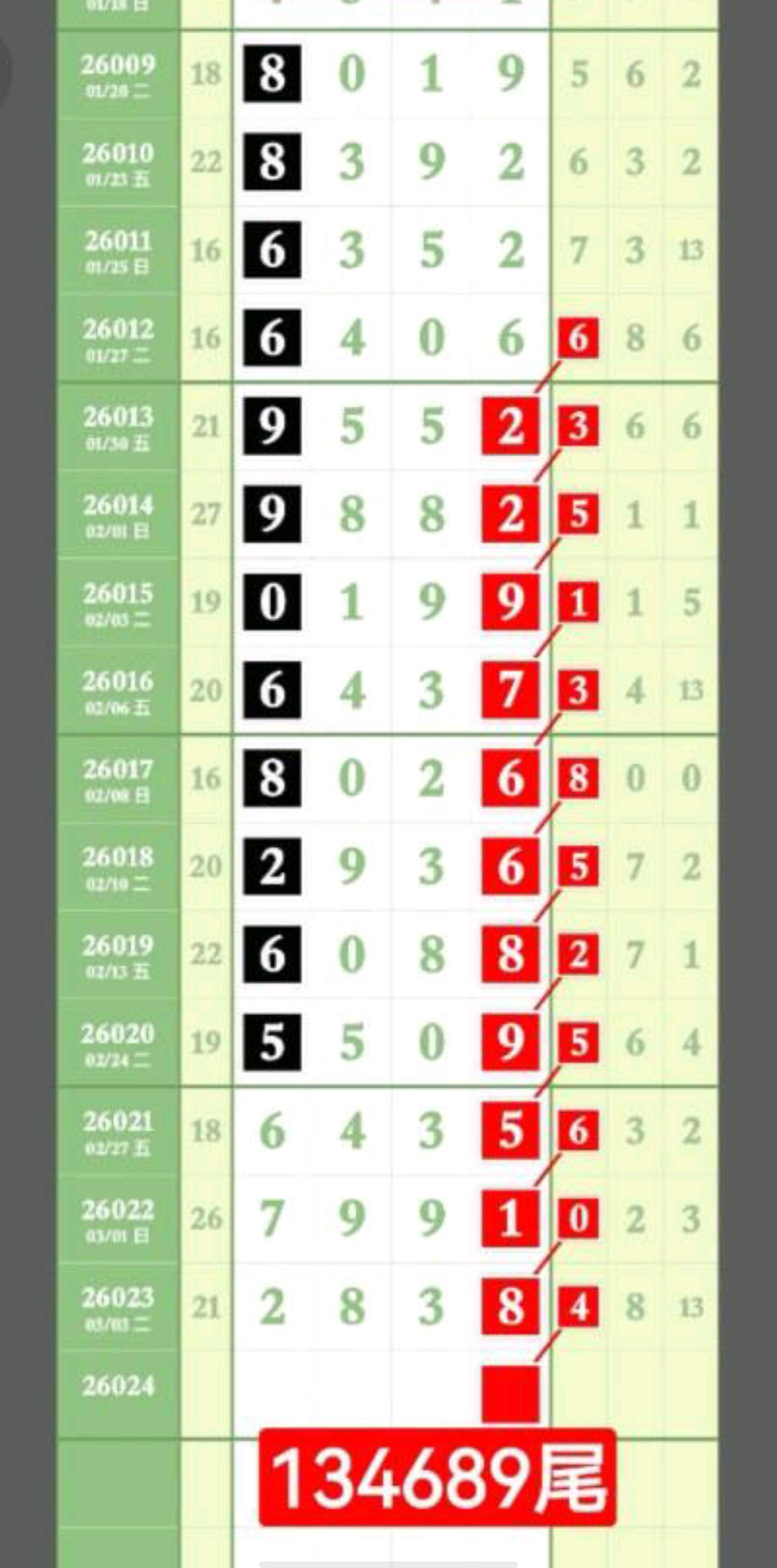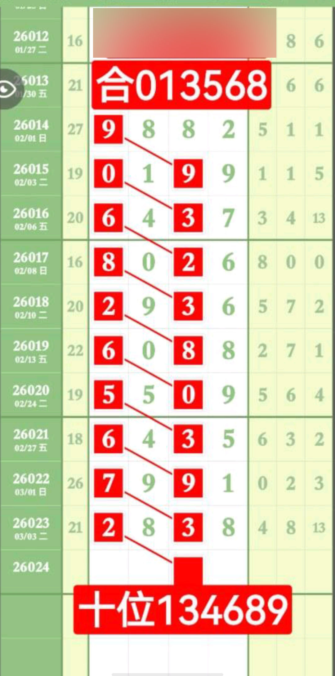 - 日日有好料,期期出芝麻,013568/134689/123678/034589。