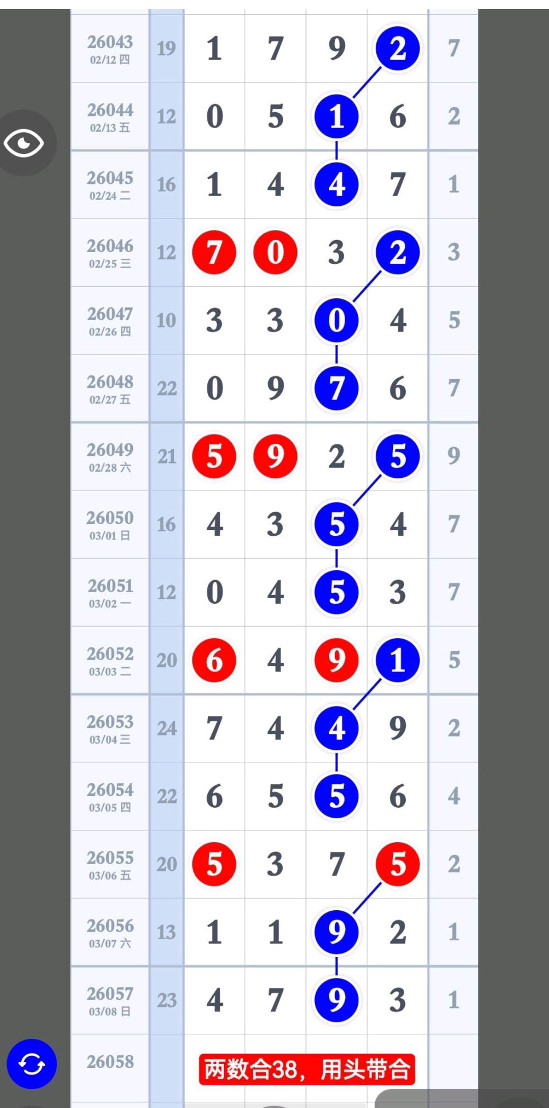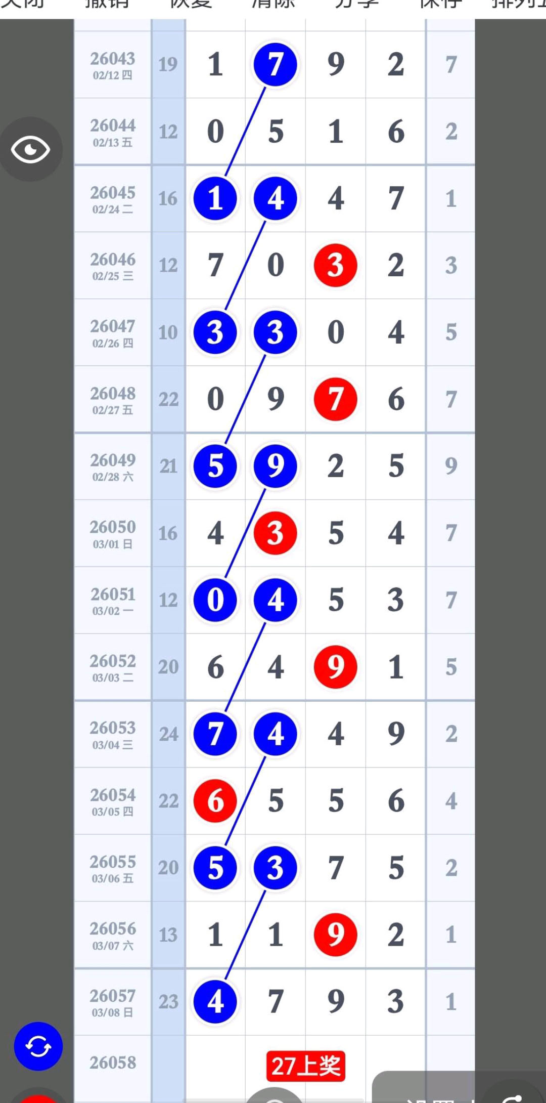 - 保持跟踪排除数,跟断为止,头杀4,百杀4,十杀0,尾杀0。