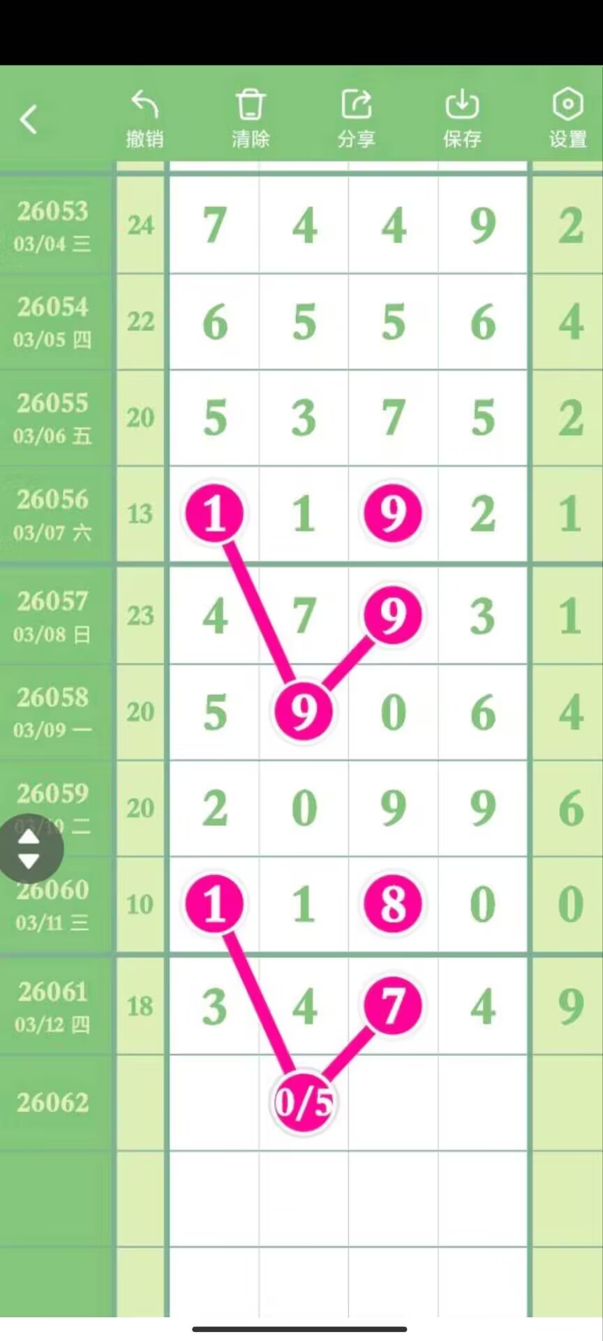 - 芝麻大范围,千位024579,百位023578,十位014569,个位013568。