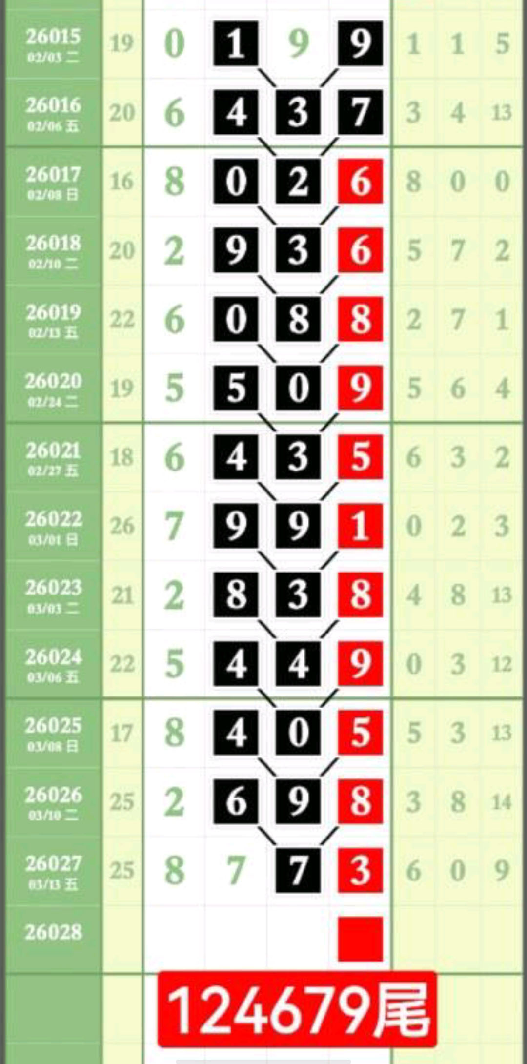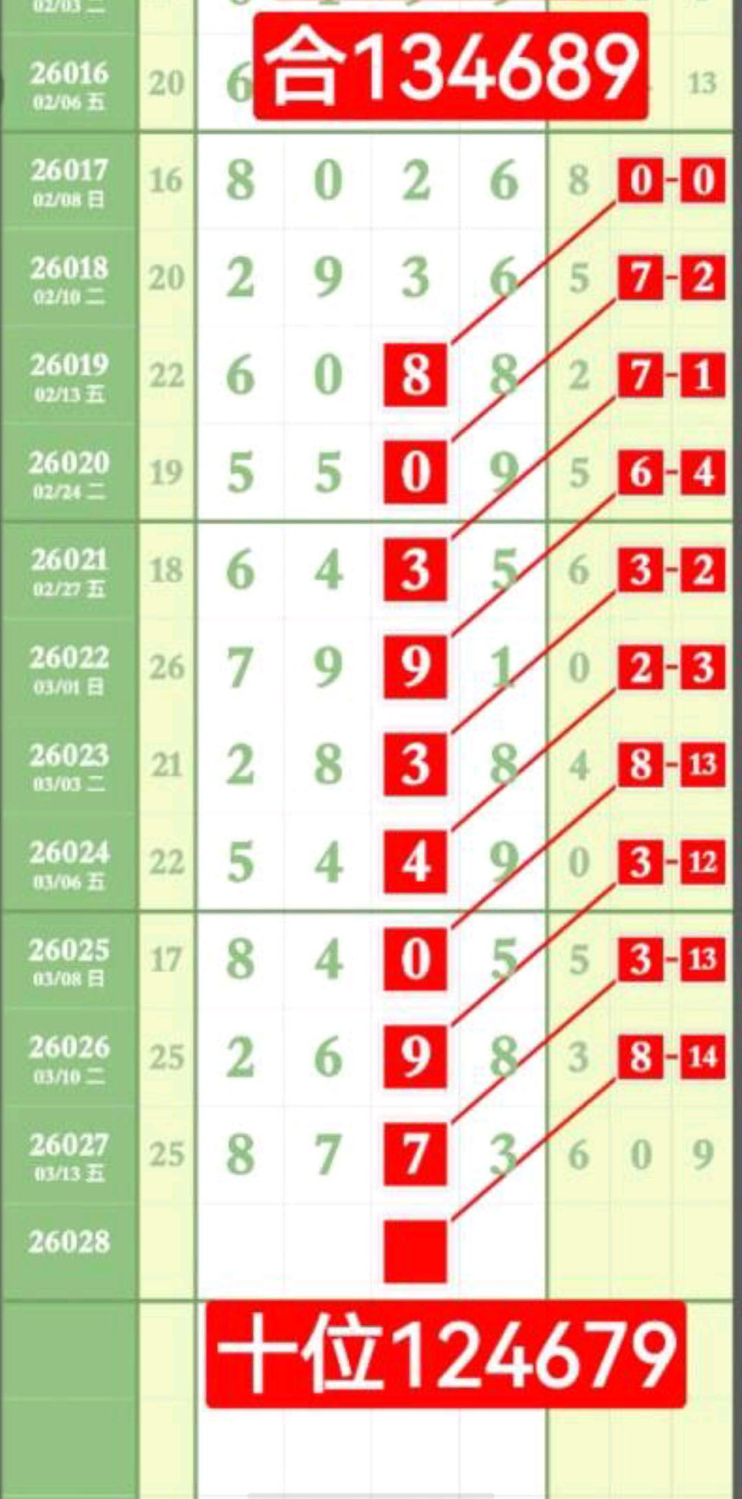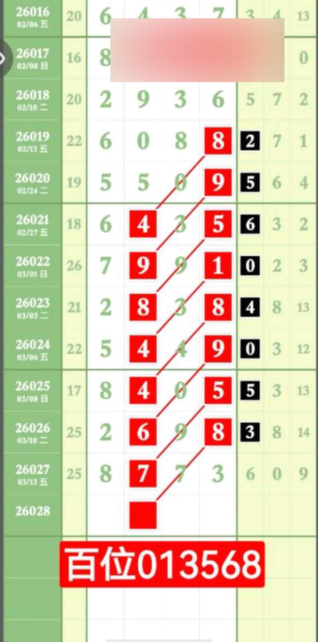 - 千百位主攻范围013568中取,十个位主攻范围124679中取。