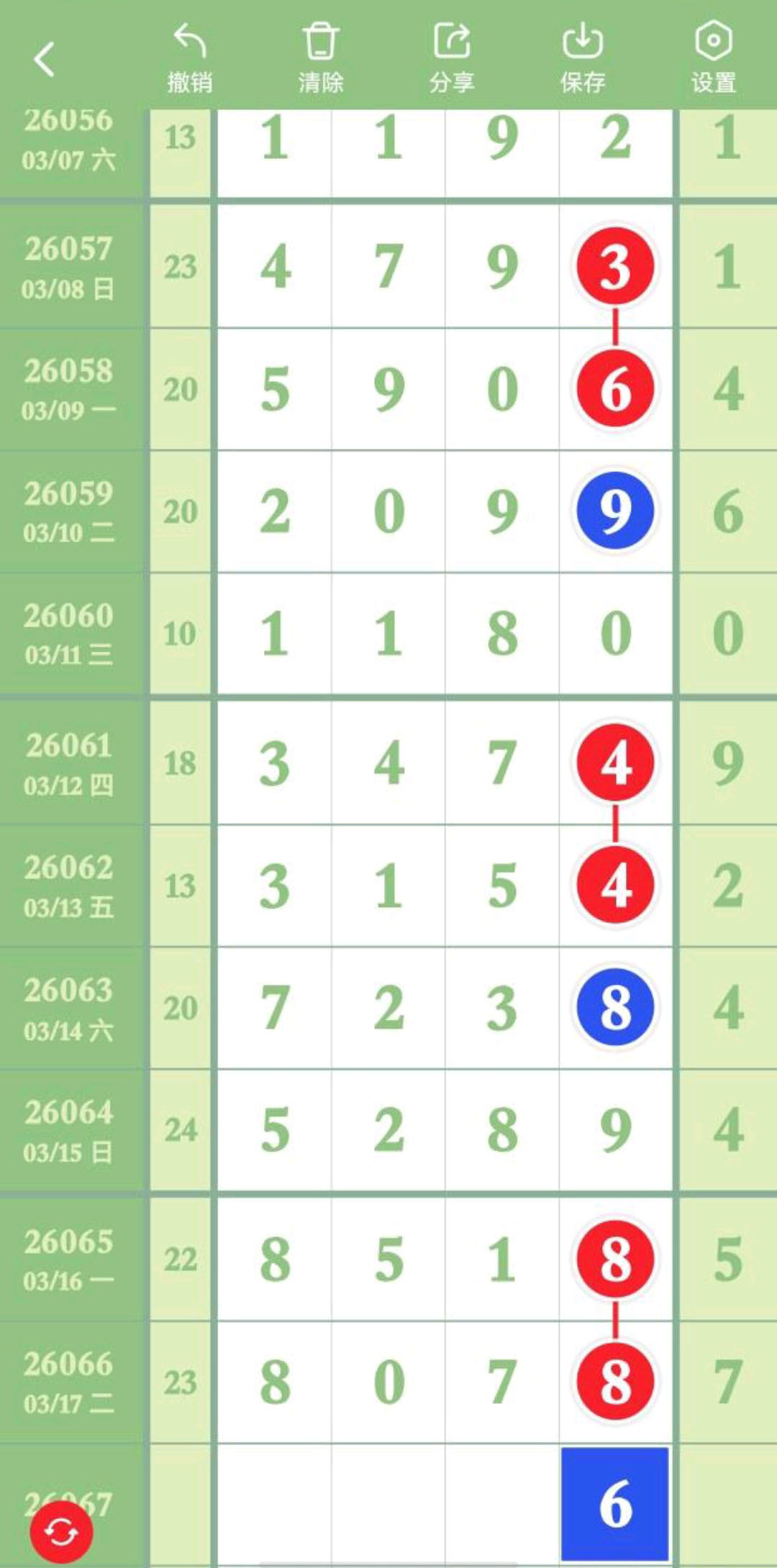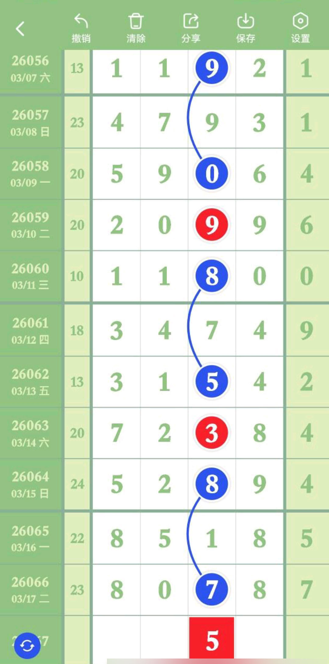 - 排除规律走得比较长,小心求证,杀2头,百杀0,十杀3,杀6尾。