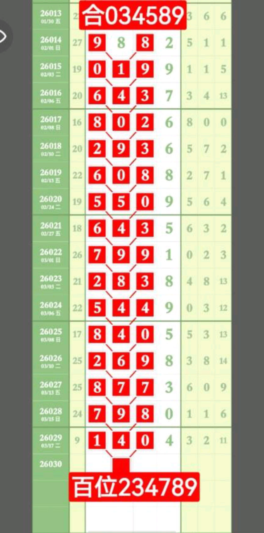 - 前三位定码范围023578,千位主攻0537,好运不断,精彩连连。