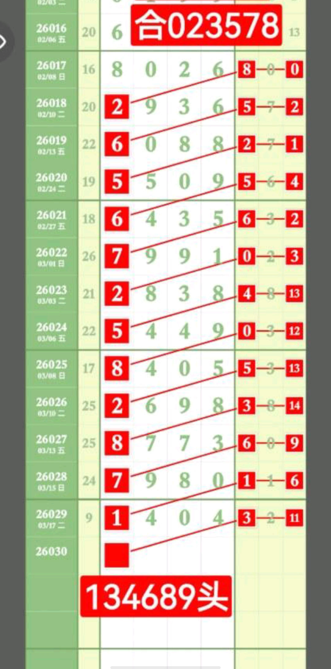 日日有好料,期期出芝麻,134689/024579/013568/234789。