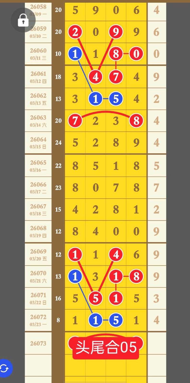 - 05有码上奖主攻后三位,0516头尾数,1627中肚数。