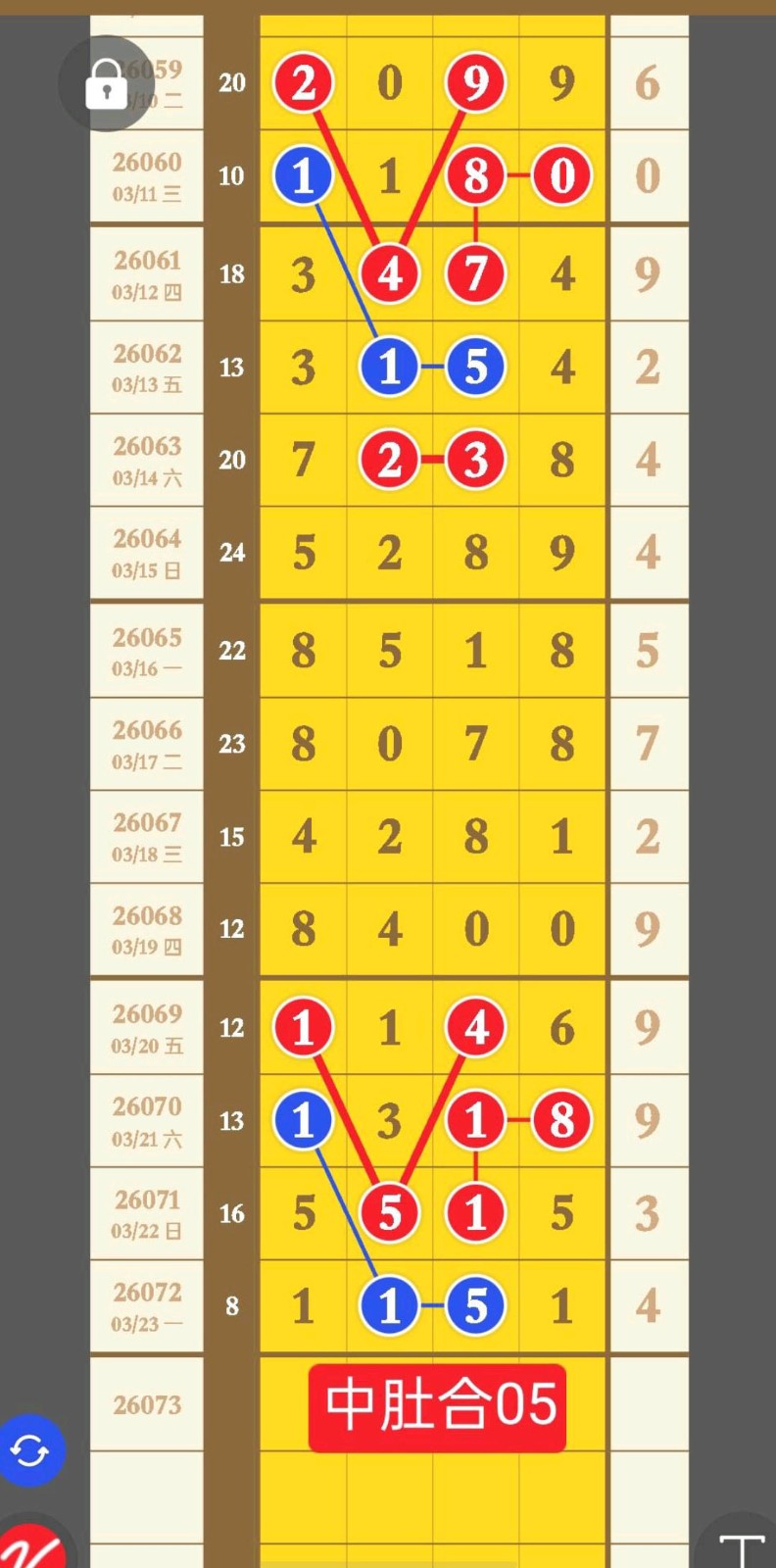 - 05主攻十位,中肚有重对,心水到,财运到,今晚财神留我家。