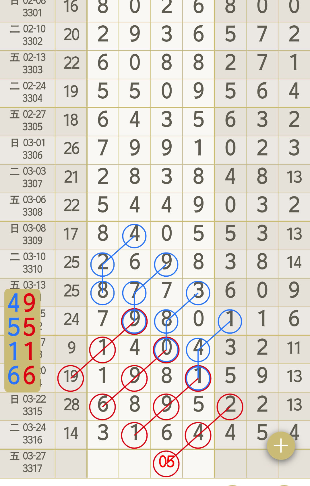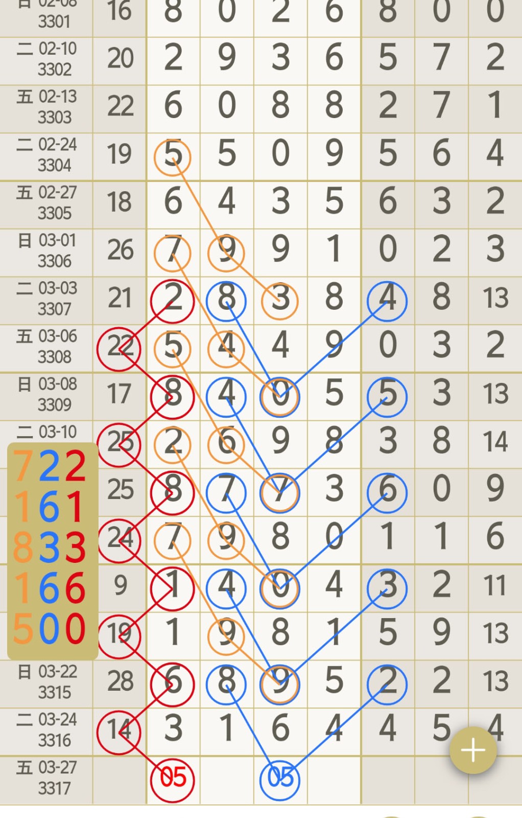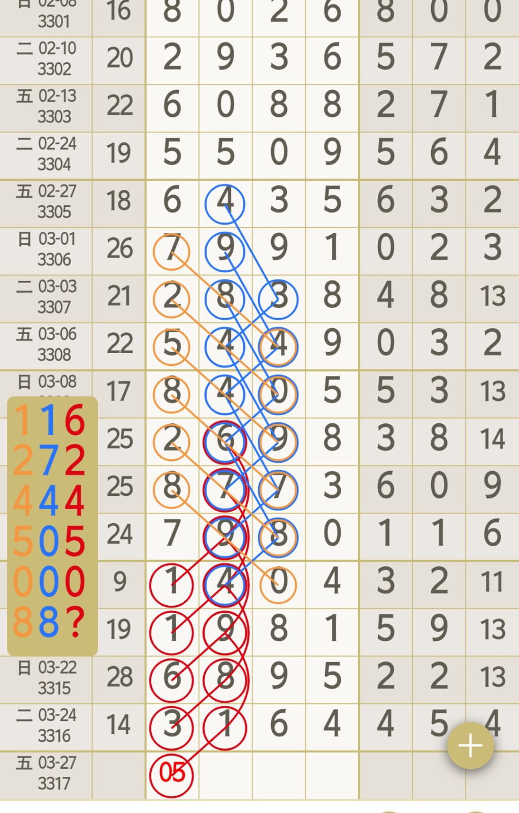 - 05有码上奖主攻后三位,0516头尾数,1627中肚数。