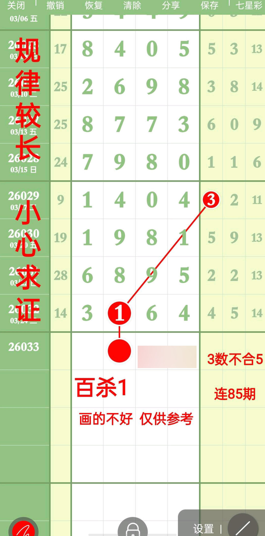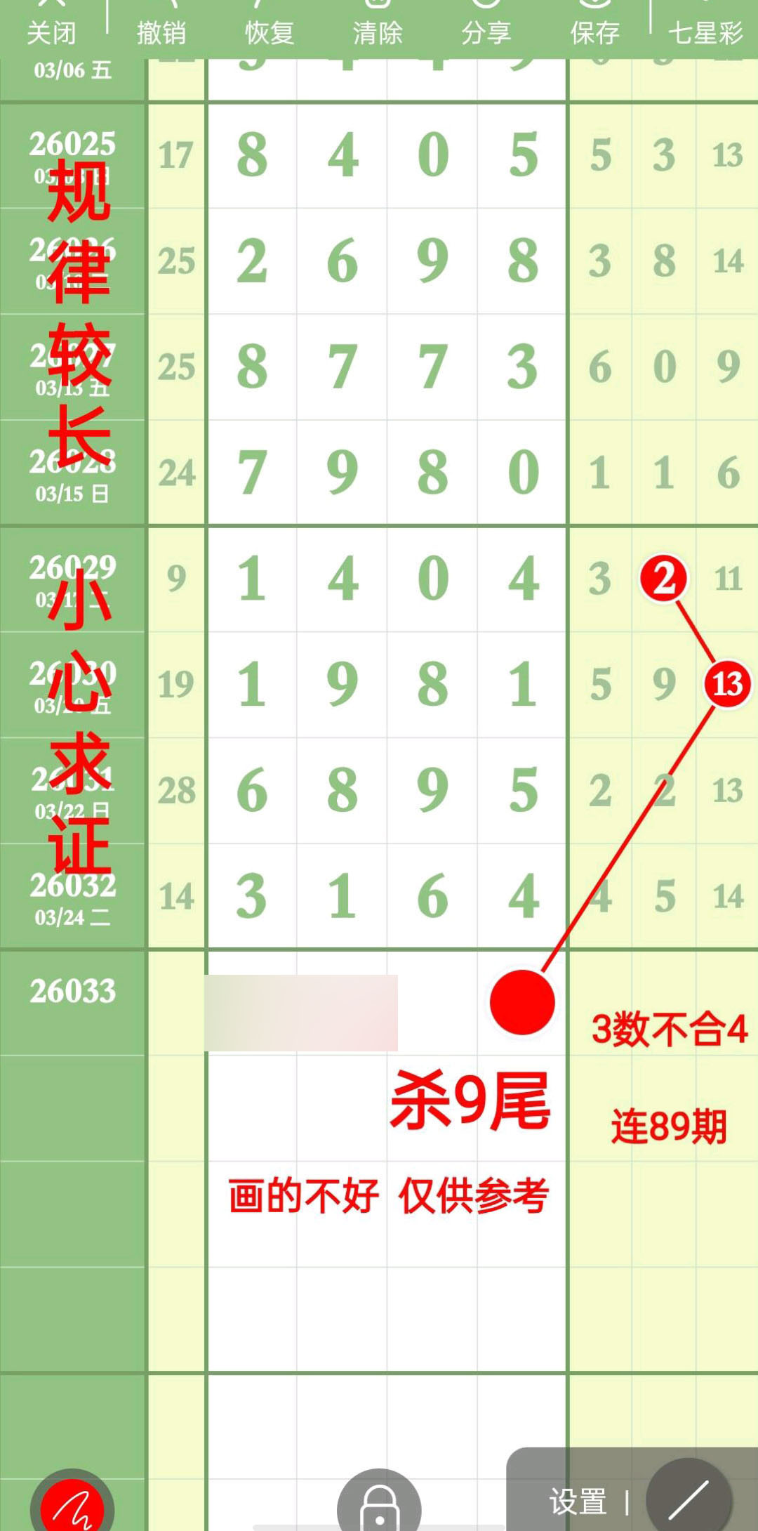 - 今期主攻百十个位,取码范围024579,靓码神规,看准就跟。