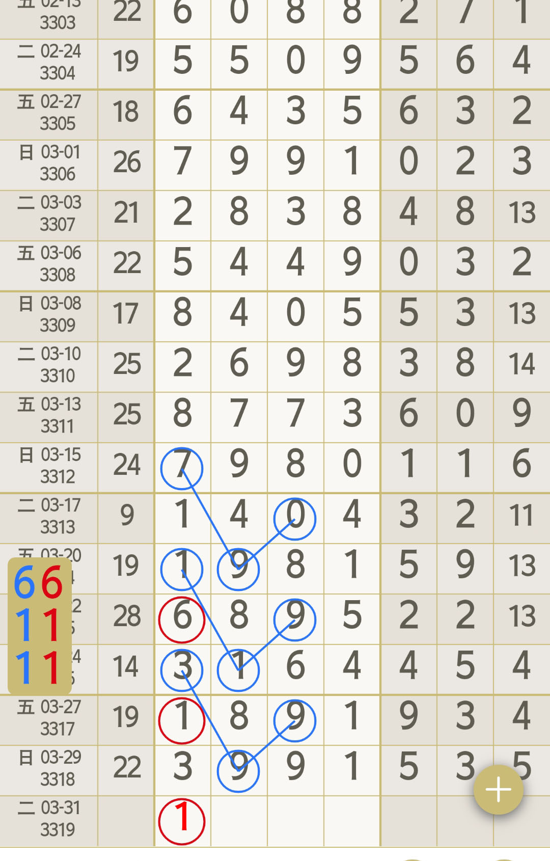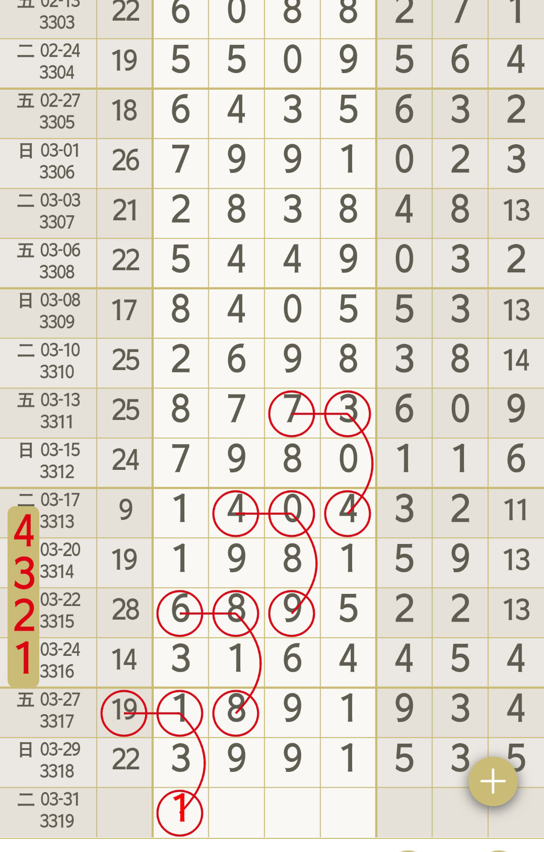 - 【七星彩-3319期】“皓月”芝麻2连中,本月累计圈中7次芝麻!3位大师圈中芝麻3991!“码富贵”二定4连中!“攻头定尾”二定3连中!跟上!