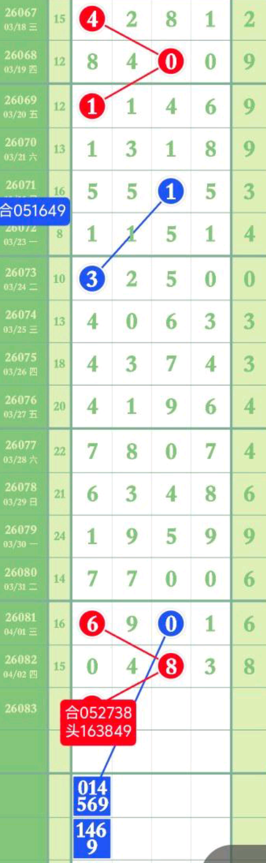 - 三定走势分析,千位012567,百位012567,十位273805,个人观点,仅供参考。