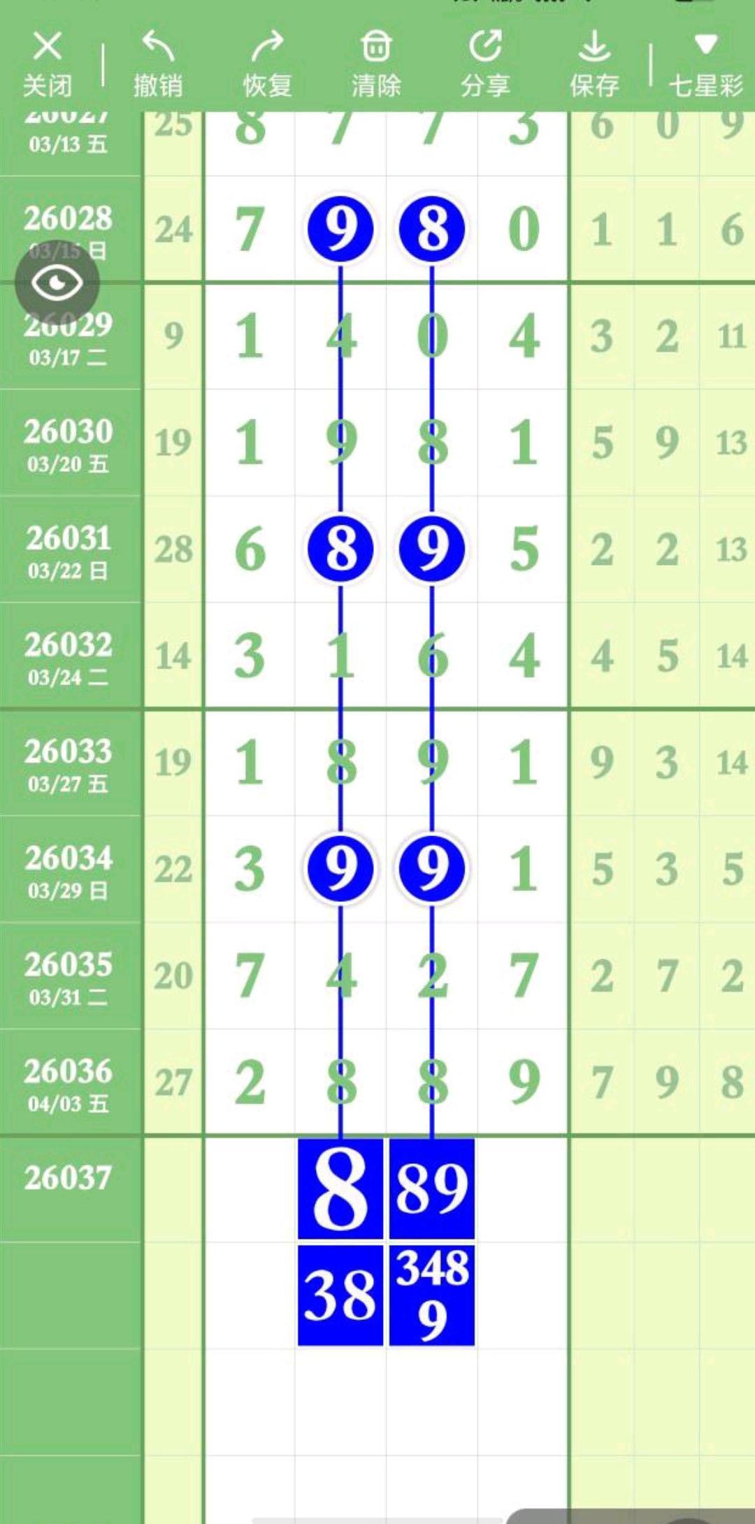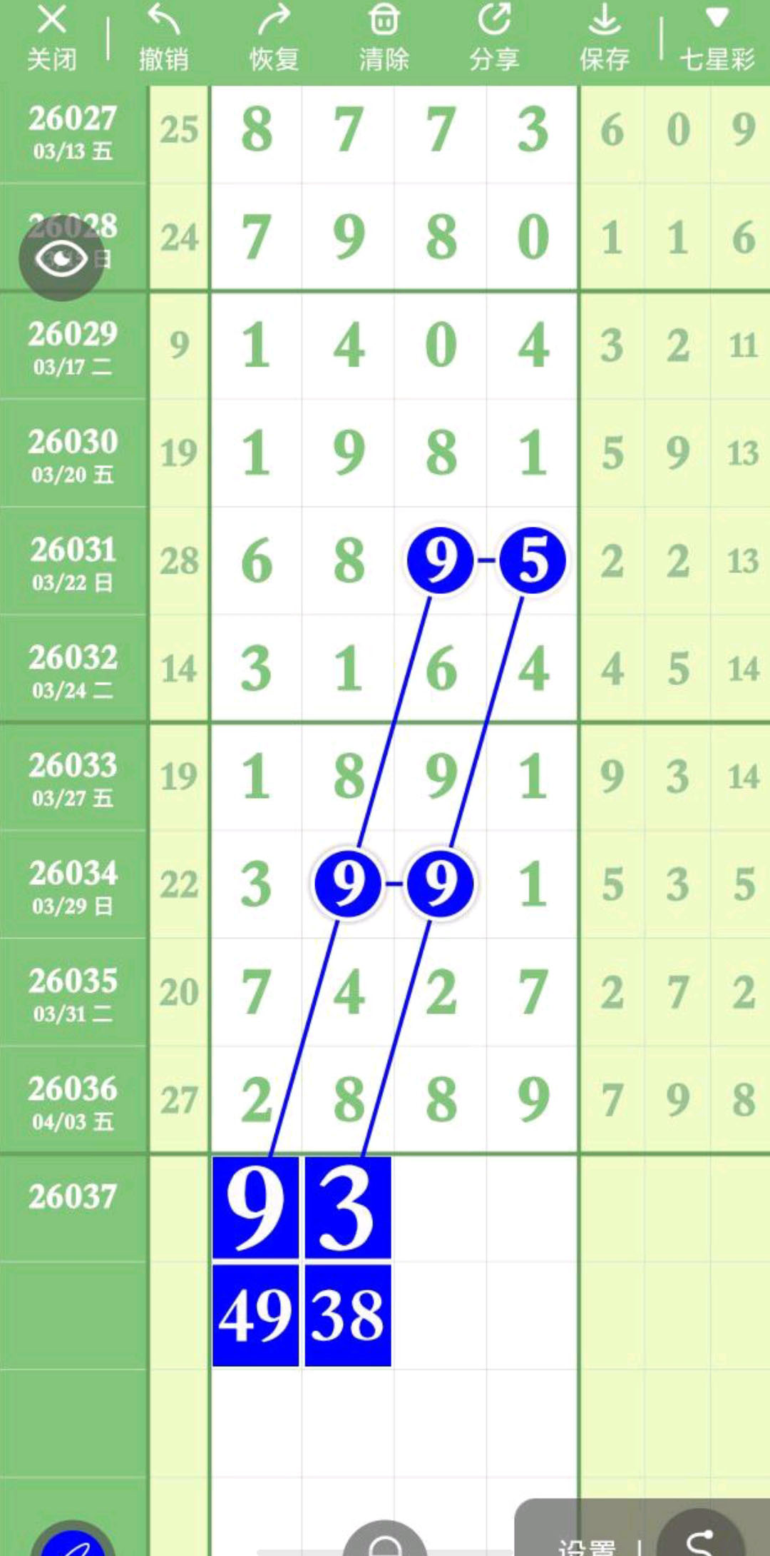 - 本期38铁,主攻头尾数,跟下二定38XX27、49XX38、05XX38。