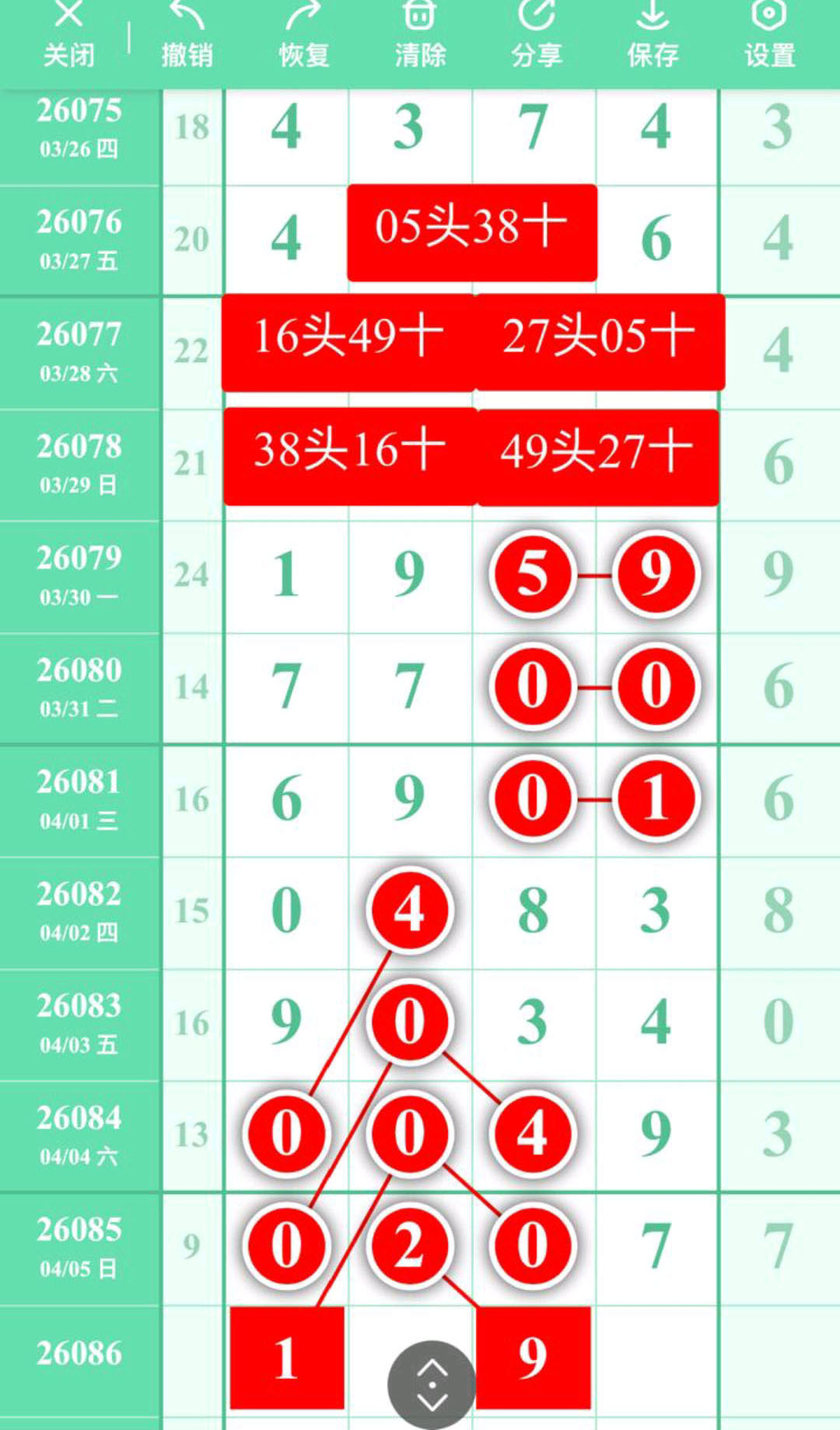 - 本期38铁,主攻头尾数,跟下二定38XX27、49XX38、05XX38。
