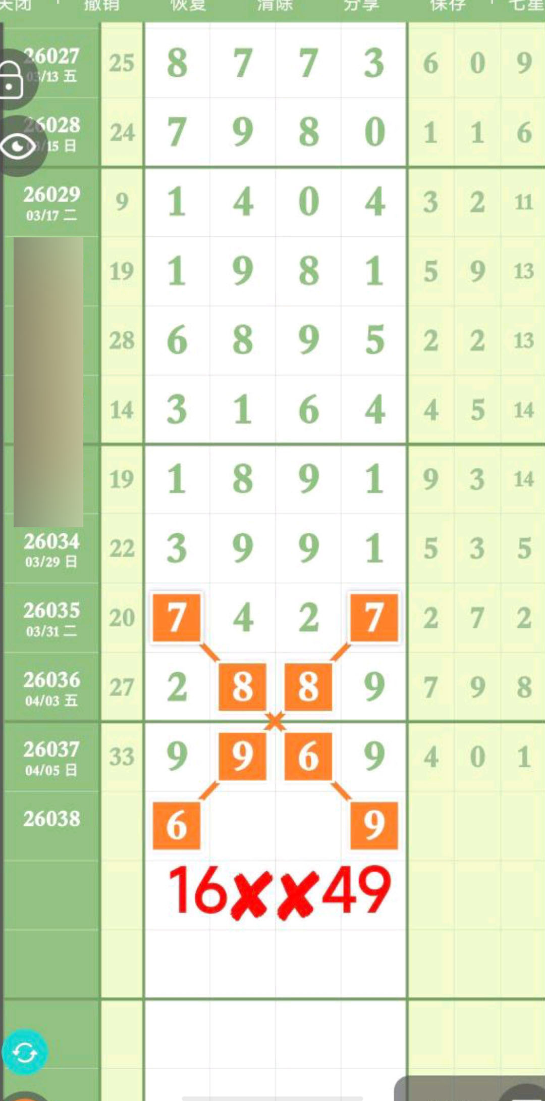 本期主攻16头,二定跟下16头053849尾,重点1XX0、6XX9、1XX8。