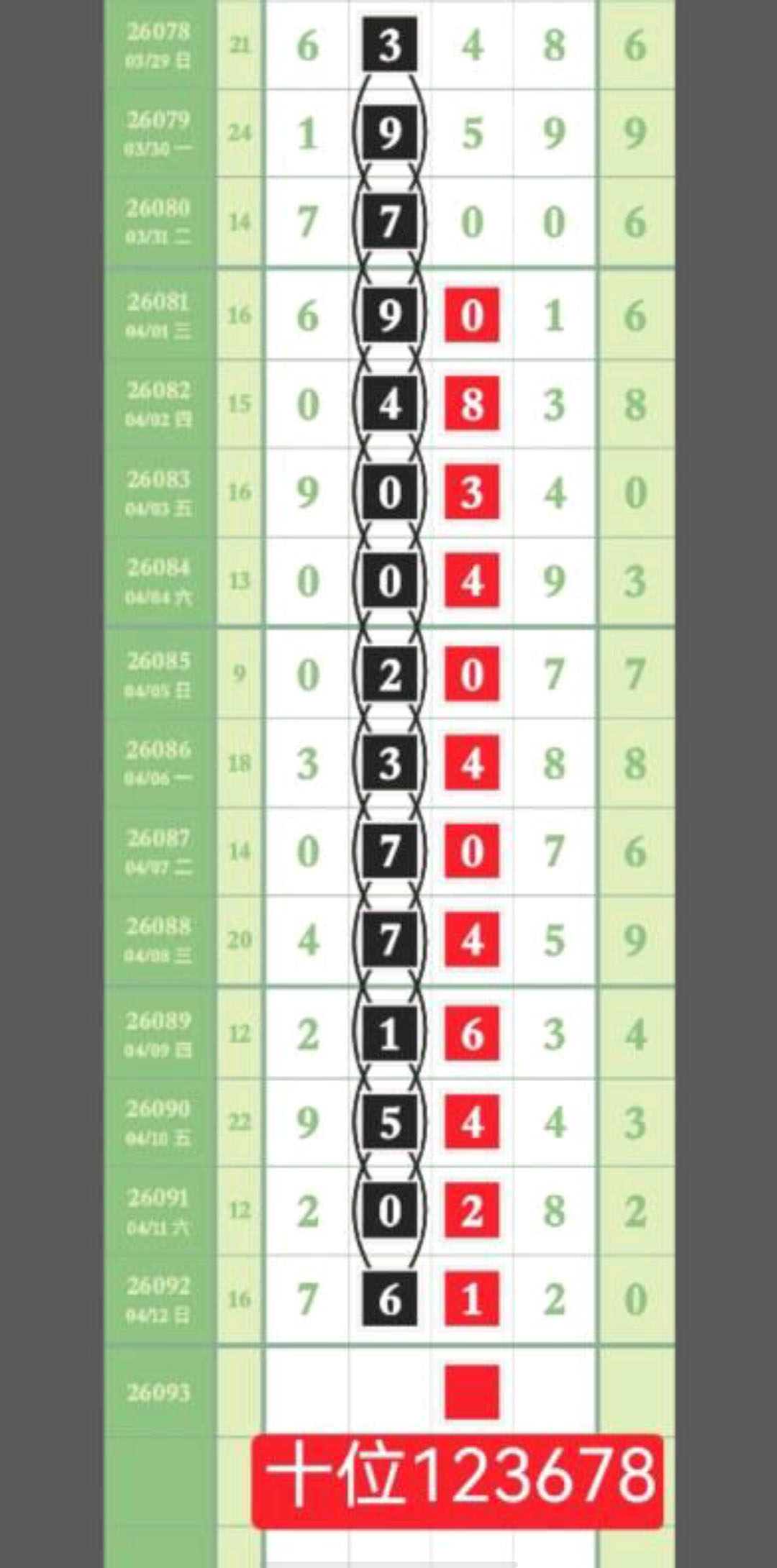- 本期排除7值芝麻,头尾不合0,中肚不合2,天天体彩,添福添彩。