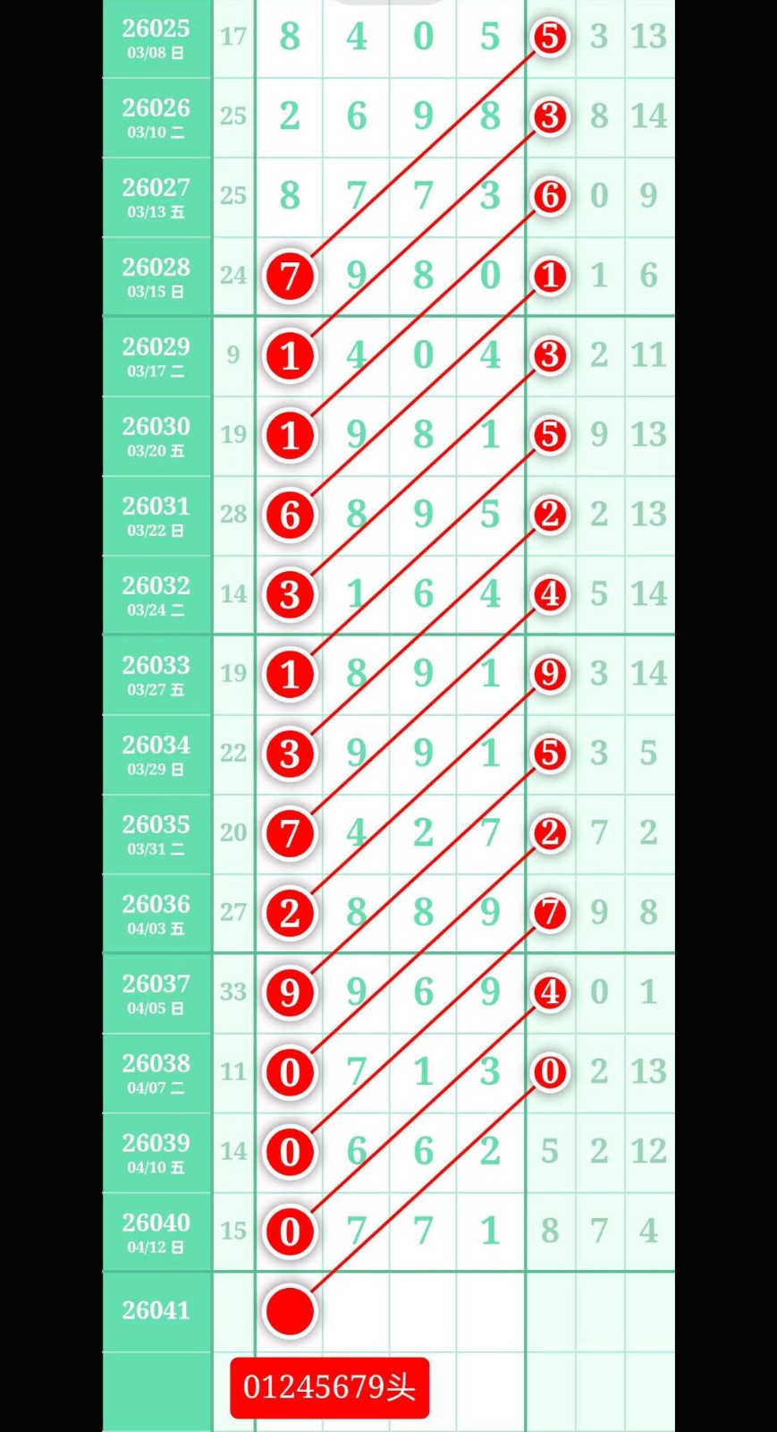 - 本期排除7值芝麻,头尾不合0,中肚不合2,天天体彩,添福添彩。