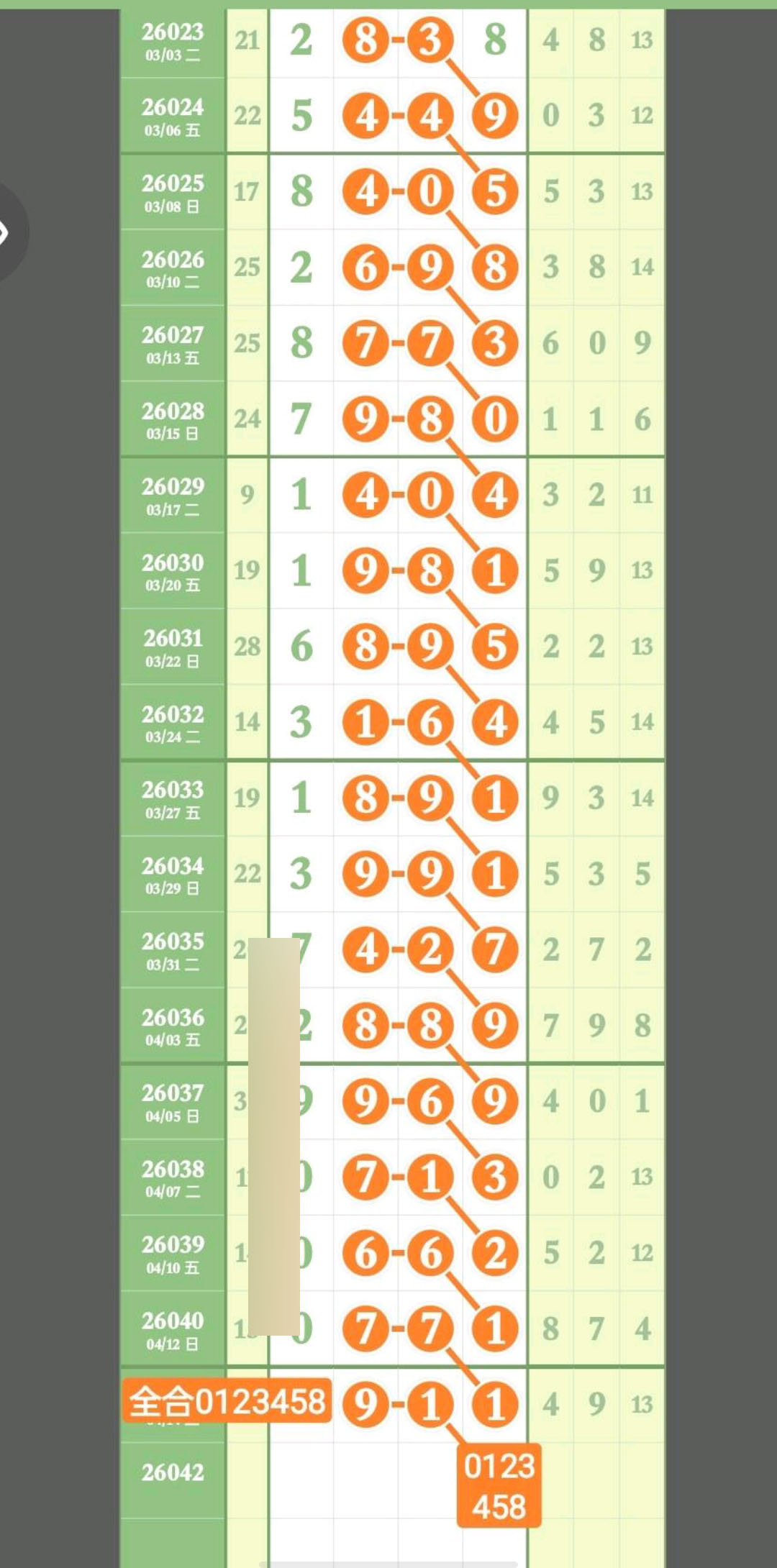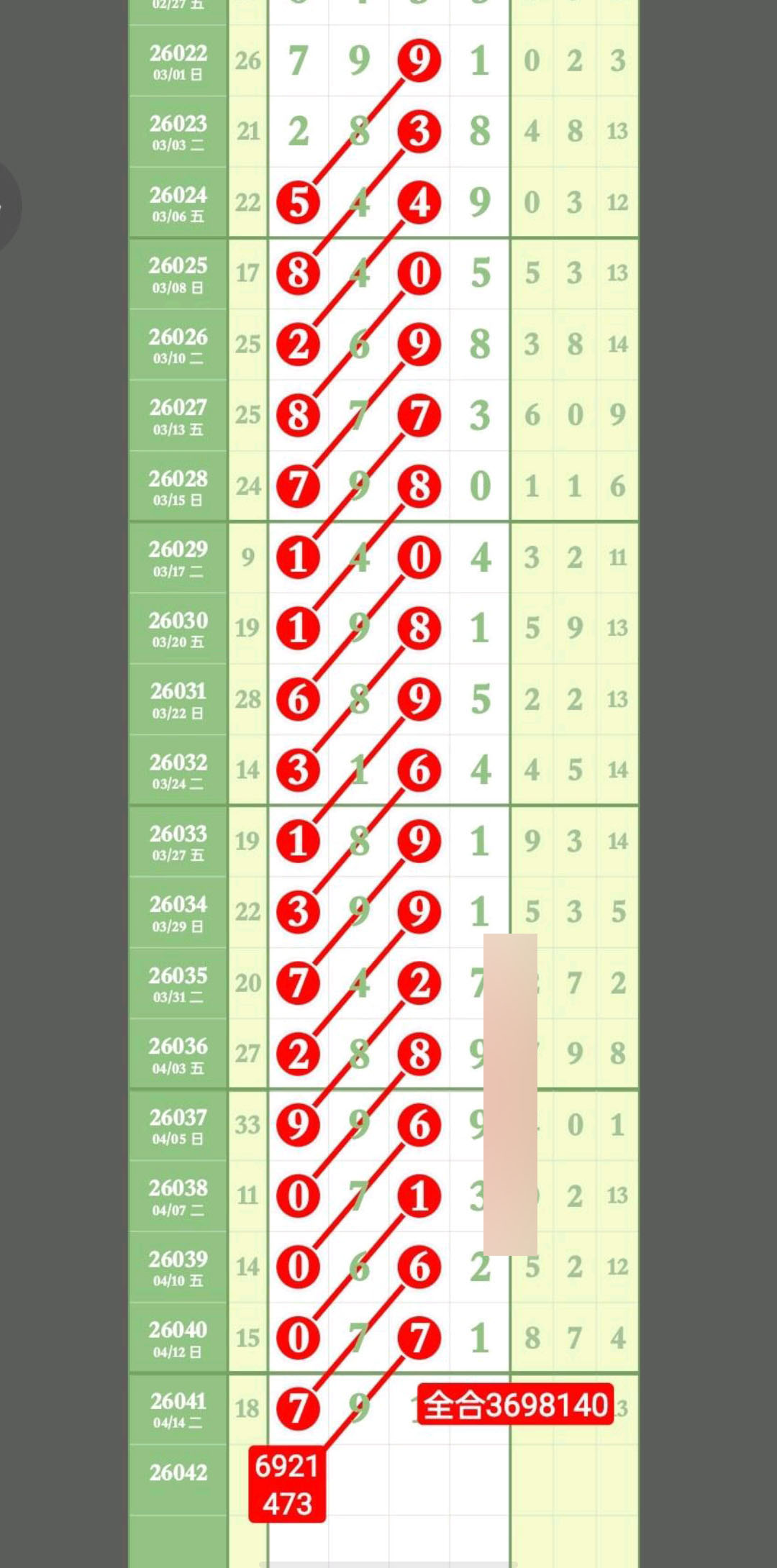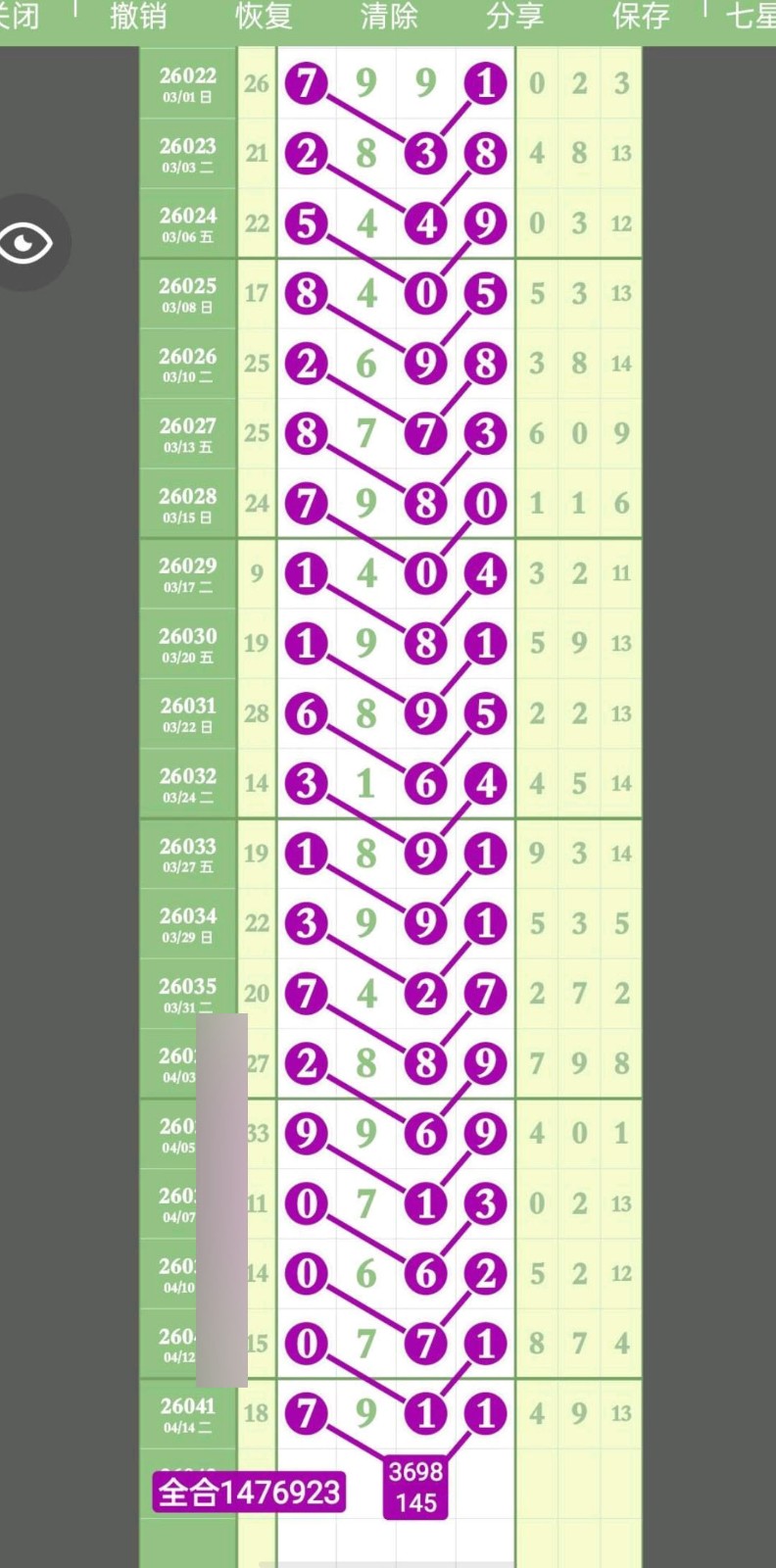 - 头尾范围主攻134689,重点148尾,中肚范围主攻023578,速来围观。