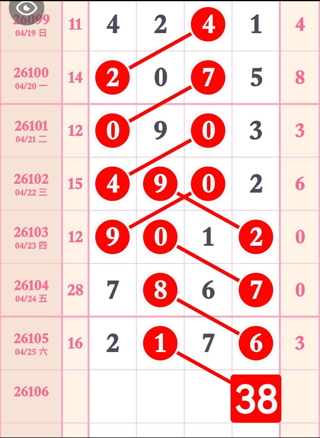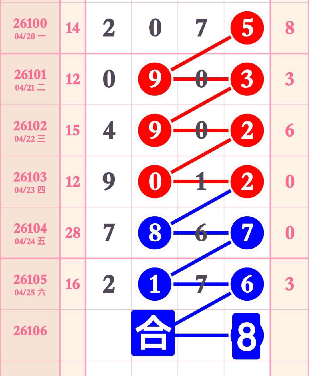 吊38尾,主攻百个合8,今日精彩数据,不容错过,速来围观。
