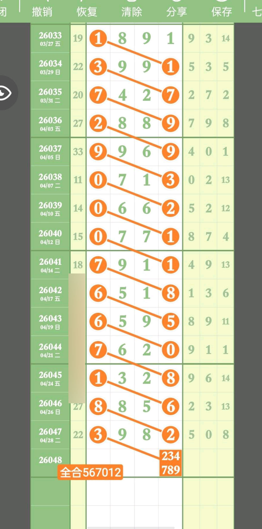 头尾主攻6粒范围码,中肚主攻7粒范围码,速来围观,一睹为快。